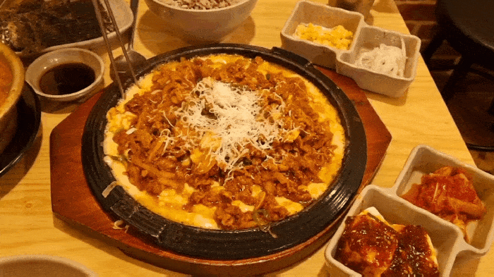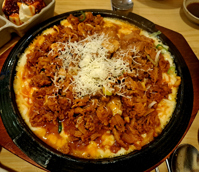 저희는 치즈 두루치기 2인분과 사이드 김치찌개를 주문했습니다.