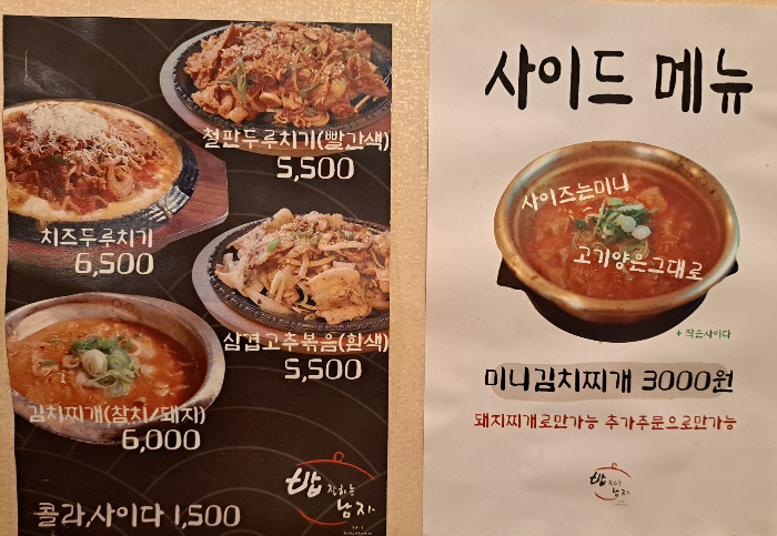 가격도 착한 가격에 사이드 메뉴가 삼천원인 김치찌개 메뉴도 있습니다.