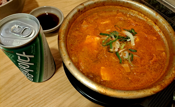 새콤달콤 적당히 익은 김치가 맛있어서 밥 한 그릇 뚝딱 할 수 있는 얼큰한 국물이 너무 맛있는 김치찌개였습니다.