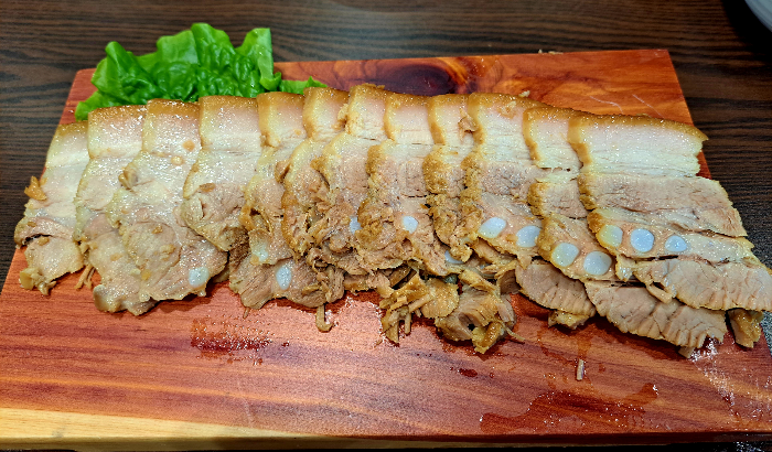 얇게 썰어져 있어서 식감도 좋았고 고기잡내도 전혀 없고 질기지 않고 부드럽고 비계 부분 까지 쫀득하고 맛있었습니다.