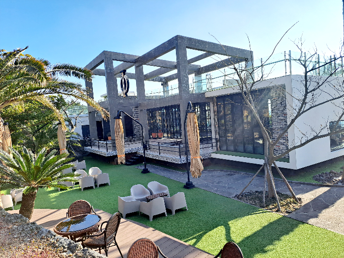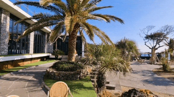 바다가 보이고 야자수와 식물들이 있는 야외 테라스들이 외국에 온 느낌이 물씬 납니다.