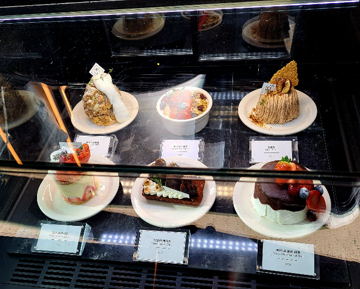 메뉴는 다양한 디저트들과 음료들과 케이크들이 있습니다.