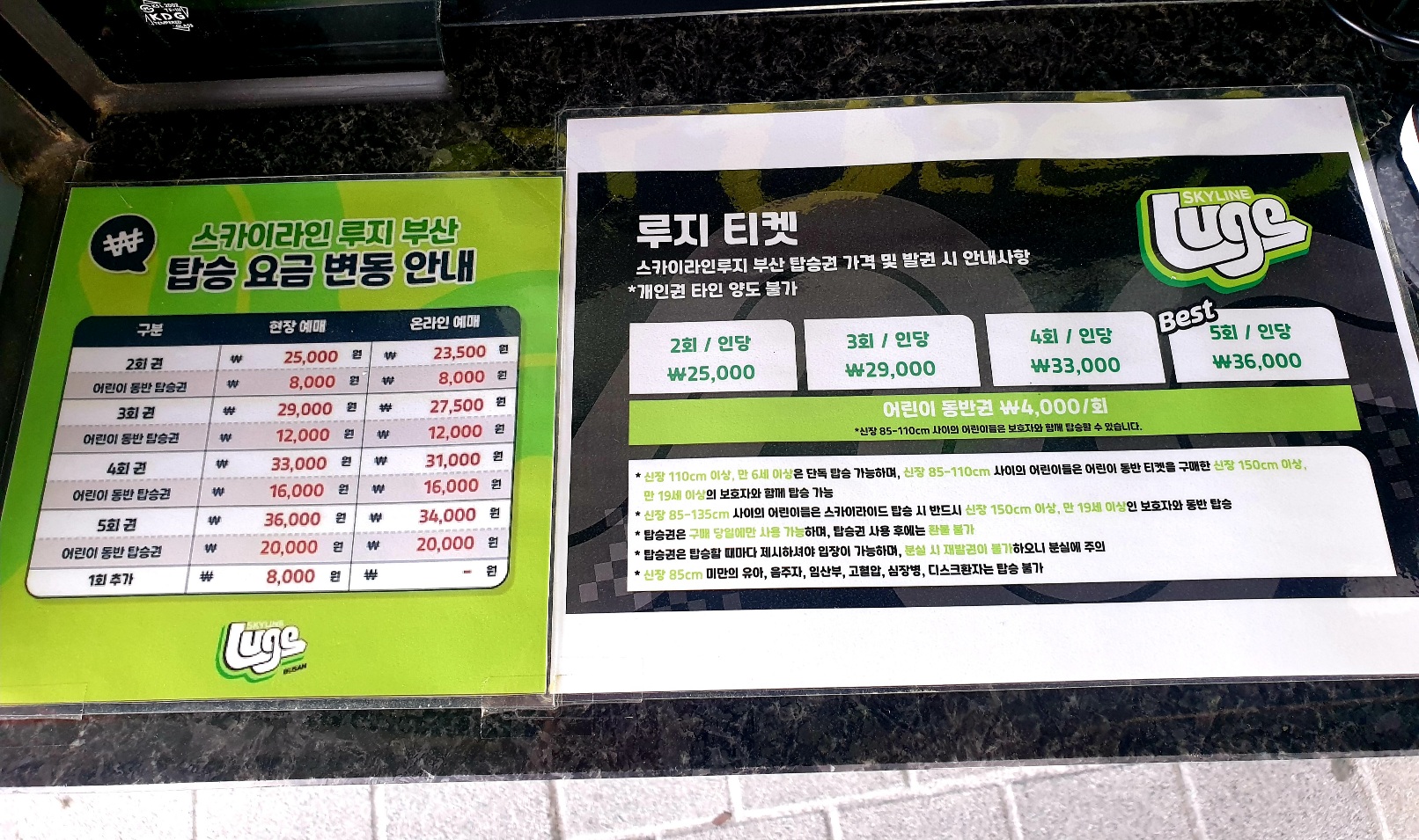 안전규칙은 필수이니, 한번 읽어보고 루지를 도전해보세요.