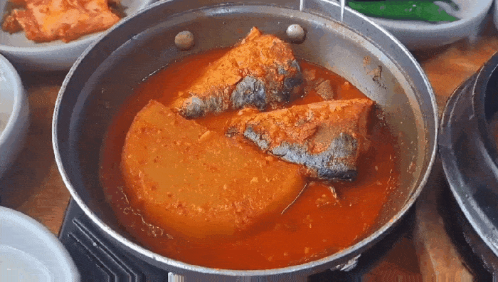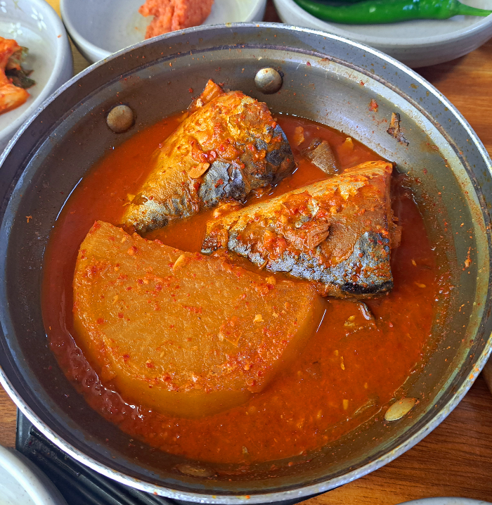 살짝 매콤한 양념의 간이 잘 배여 너무 맛있었던 고등어조림은 살도 많고 비린내도 안 나서 너무 맛났습니다.
