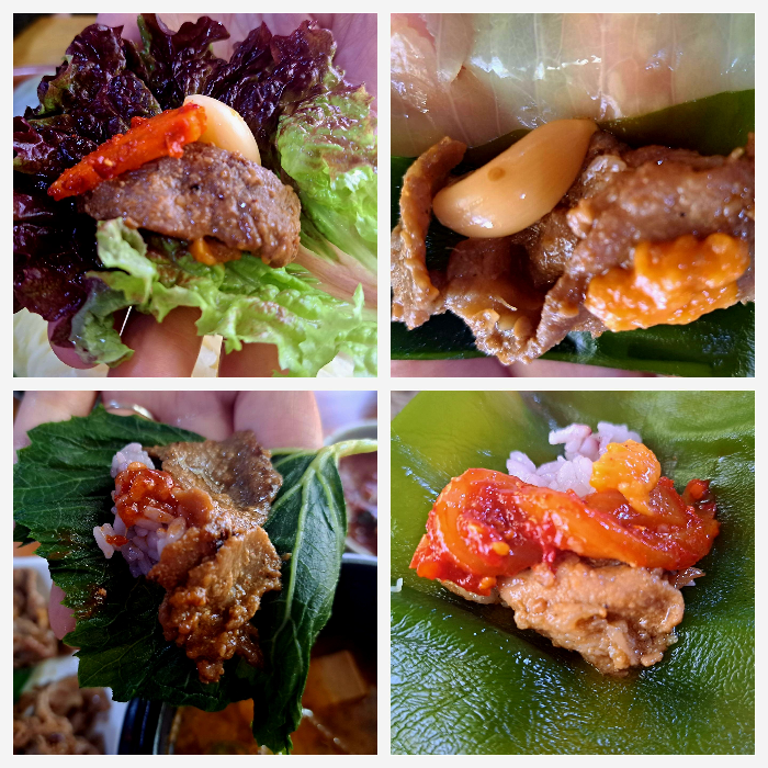 쌈도 다시마, 양배추, 호박잎 등 종류가 많아서 쌈 싸 먹을 때 골라먹는 재미가 있습니다.