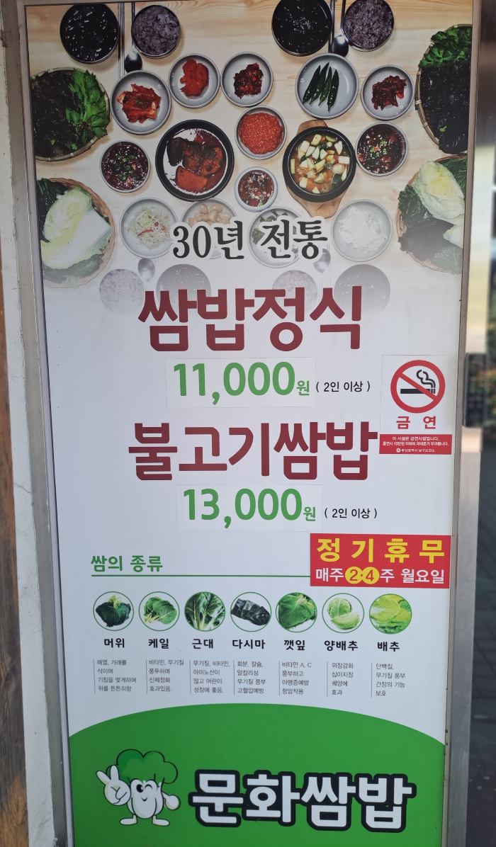 문화 쌈밥집의 메뉴입니다.