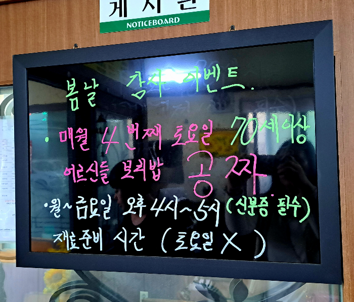 어르신들을 위한 봄날 감사 이벤트도 하시는 착한 식당이네요.