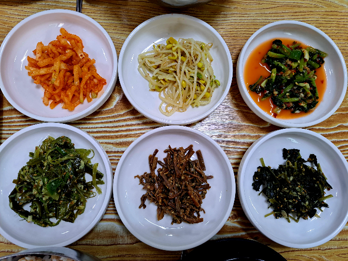 나물들의 간이 너무 세거나 싱겁지 않게 딱 적당한 간으로 잘 무쳐서 집밥 느낌으로 다 맛났습니다.