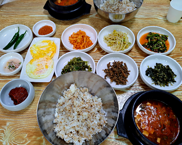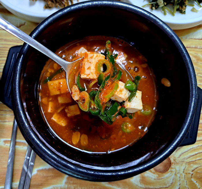 빨간 강된장 스타일의 매콤한 된장찌개는 그냥 떠먹어도 맛있고 보리밥에 비벼서 먹어도 너무 맛나고 뒷맛이 정말 깔끔했습니다.