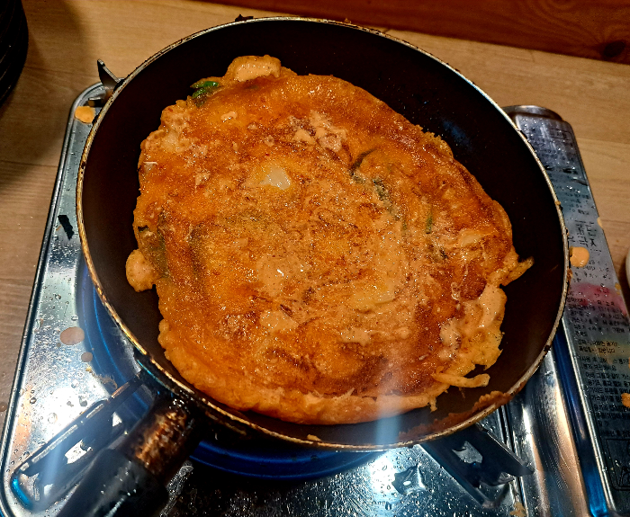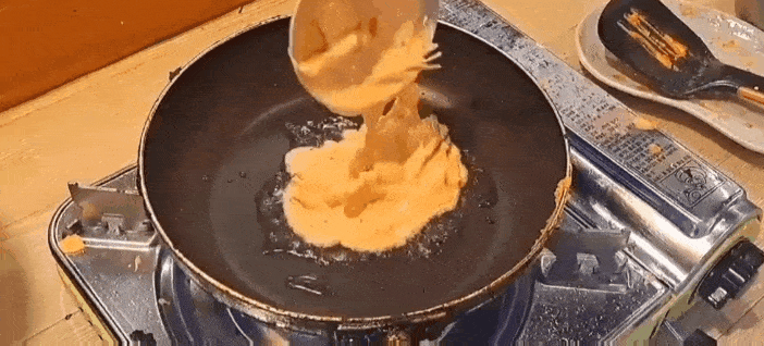 프라이팬에 기름을 두르고 열기가 오르면 적당히 부어서 노릇노릇 안 타게 구워주면 됩니다.