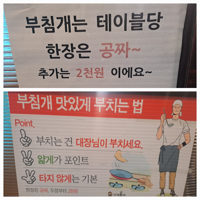 음식이 나오기전 기다리면서 애피타이저로 먹기 좋은 부침개 만들기 코너 넘 좋은데요.