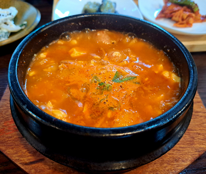 해물 순두부가 제일 인기있는 메뉴인데 햄을 좋아해서 햄순두부를 시켯는데 정말 칼칼하면서 맛도 있는 부대찌개맛이였습니다.