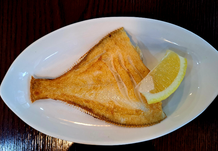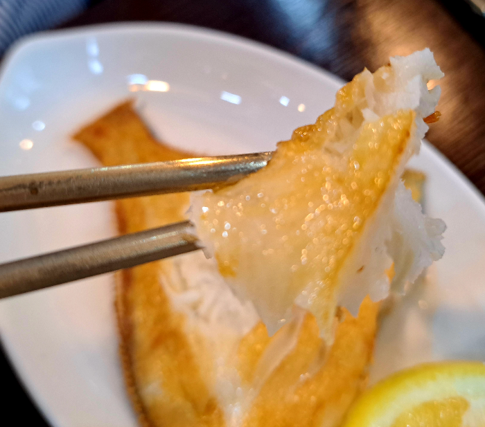노릇노릇 바삭하게 잘 구워진 가자미에 레몬즙을 뿌려서 밥과 함께 먹으면 꿀맛입니다.