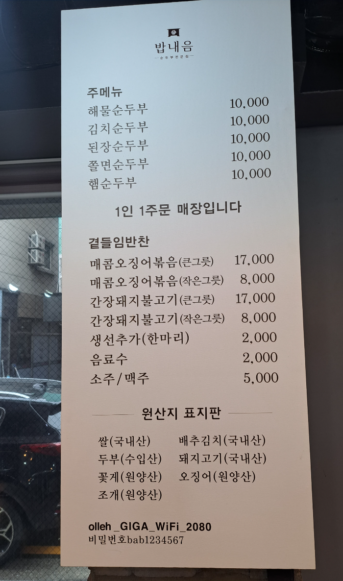밥내음은 1인 1주문만 가능한 매장입니다.