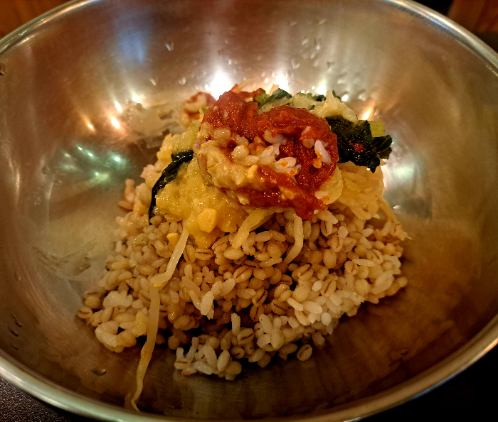 그릇이 커서 보리밥양이 작아 보이지만 리필도 되고 양도 적지 않습니다.