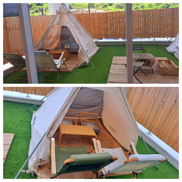 야외에 인디언텐트와 테이블이 꾸며져 있어서 캠핑 분위기로 즐기실 수도 있습니다.