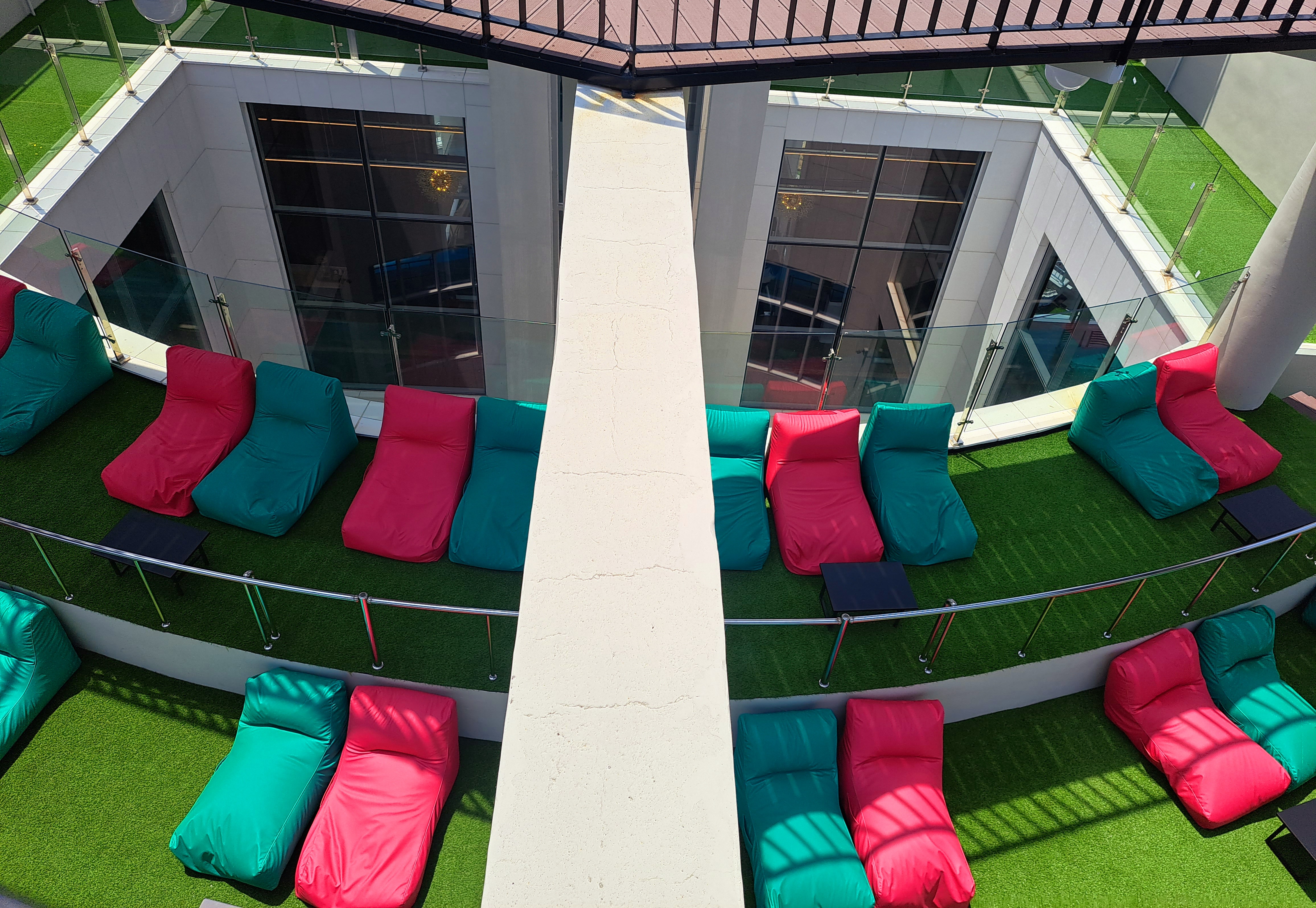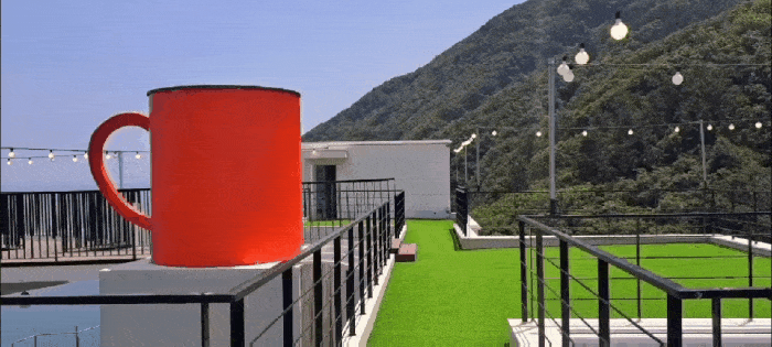 루프탑에 올라가니 시그니처 빨간 컵이 있습니다.