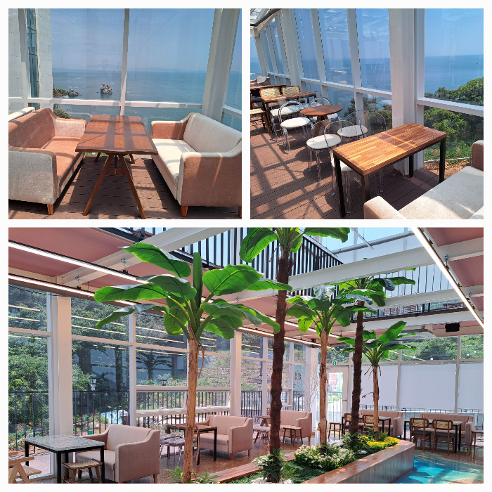 통유리창으로 멋진 오션뷰를 즐길 수 있고 다른 느낌들의 좌석들이 많아서 고르는 재미도 있습니다.