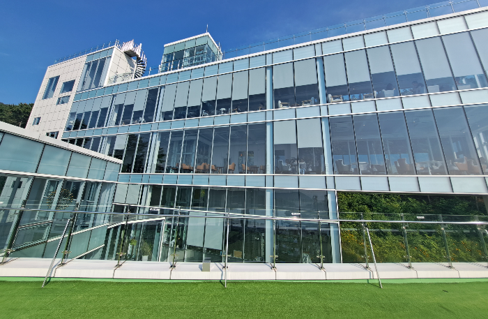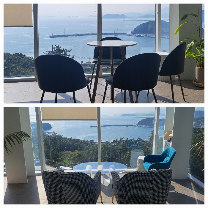 실내는 층고가 높고 모두 유리로 되어 있어서 바다뷰를 보기 좋습니다.