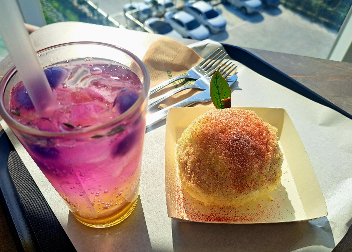 시그니처 음료인 핑크하이브 에이드는 보라색이 너무 영롱하게 빛나서 너무 이뻤습니다.