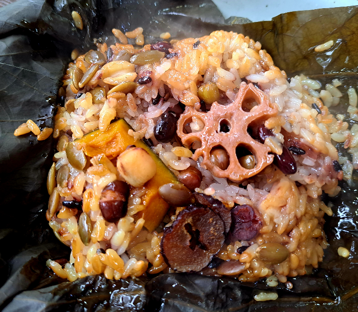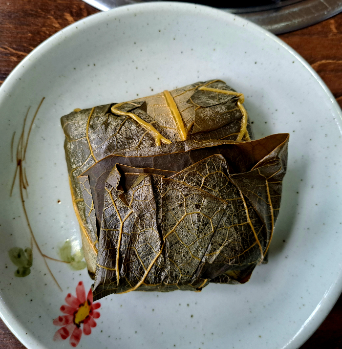 연잎밥 속의 재료들을 아끼지 않고 넣으신 사장님의 손길과 정성이 느껴지는 연잎밥입니다.