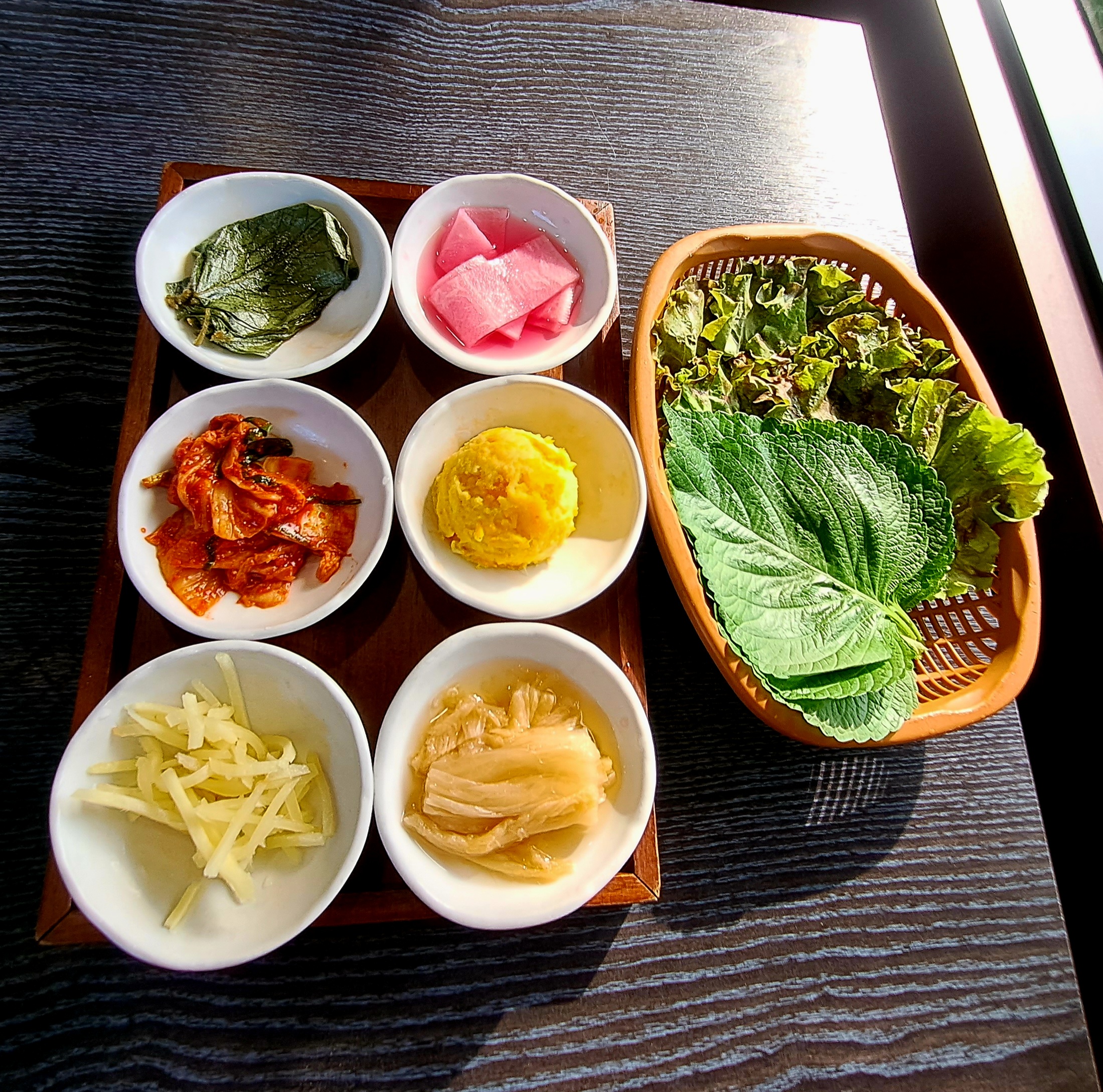 생강/김치/고구마샐러드/깻잎절임/무절임등도 고기와 함께 곁들여 먹기 좋은 반찬들입니다.