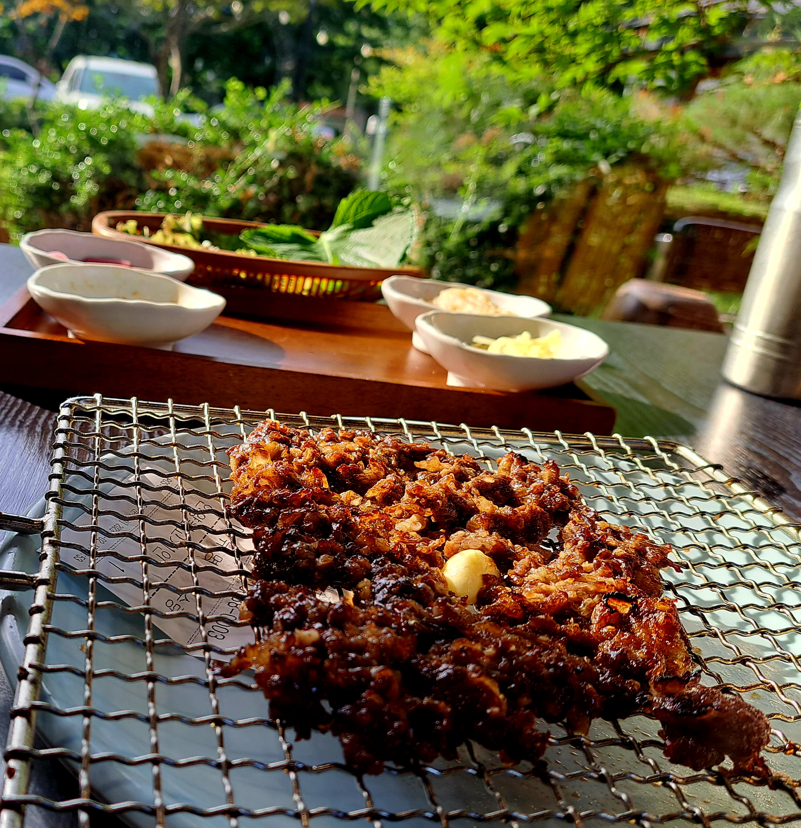 숯불에 구워져서 숯불과 불고기향이 가득한 언양불고기입니다.