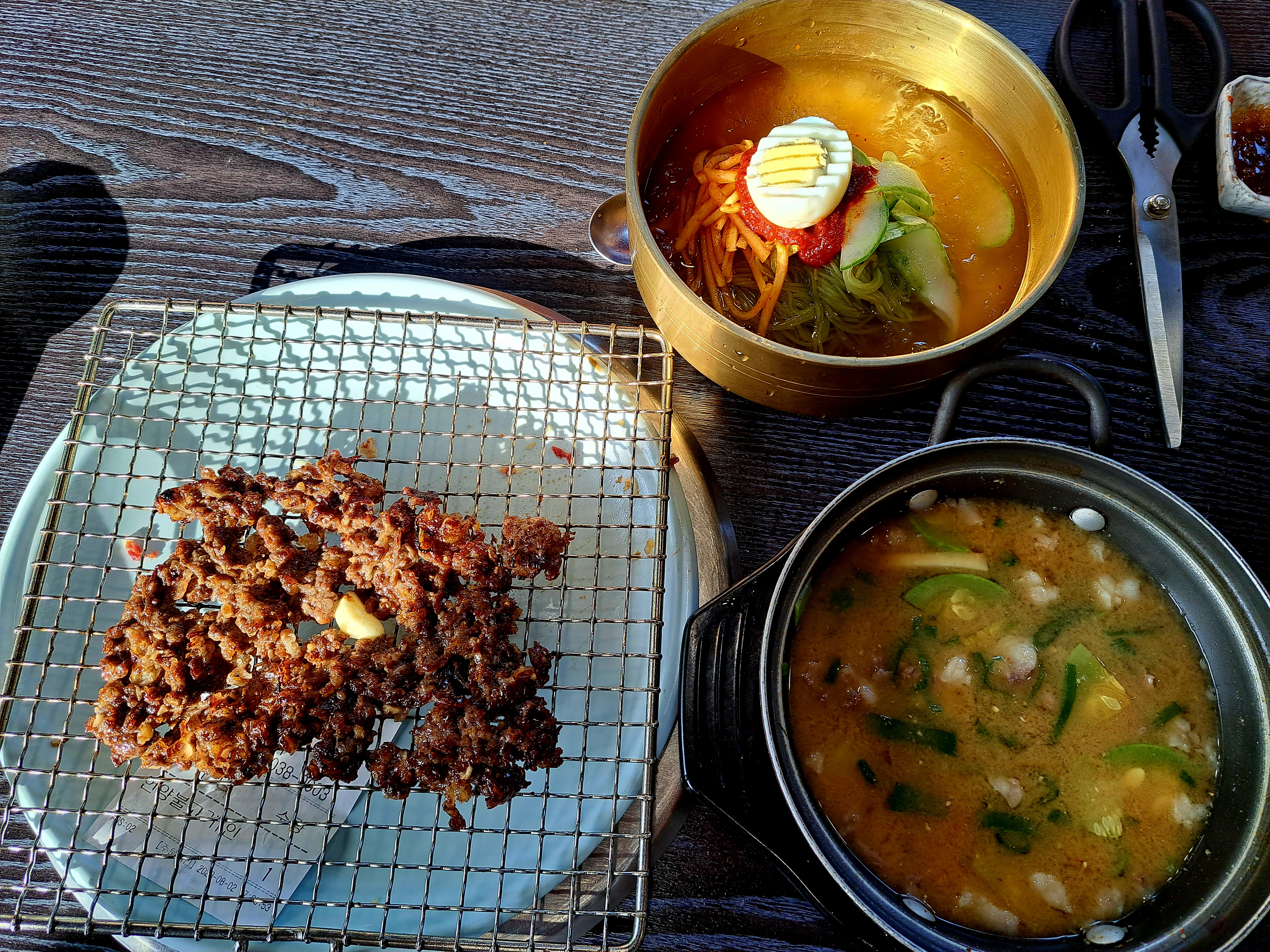 식사류로 시킨 언양불고기/물냉면/된장찌개입니다.