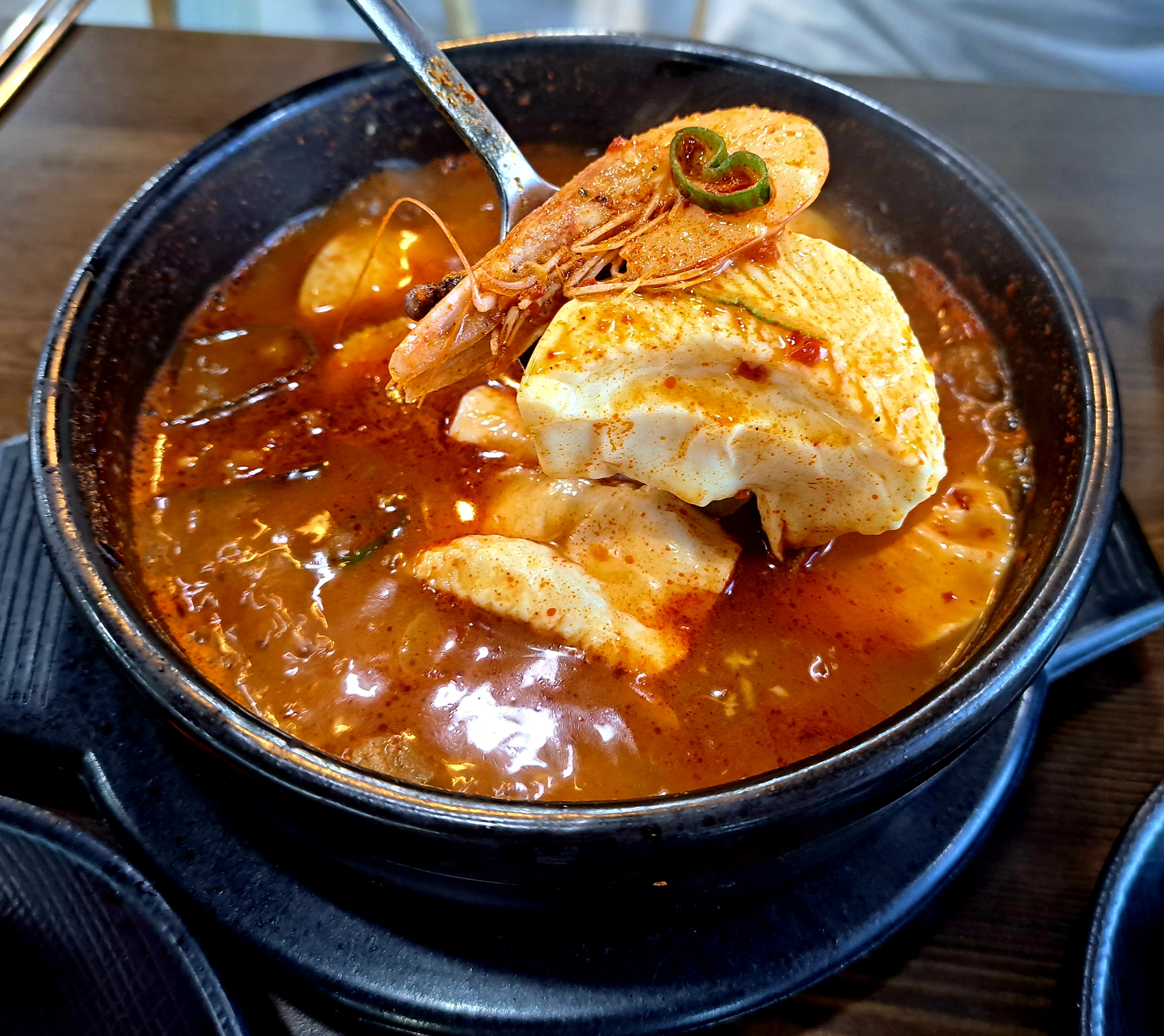 뚝배기에 뜨끈한 일품 순두부입니다.