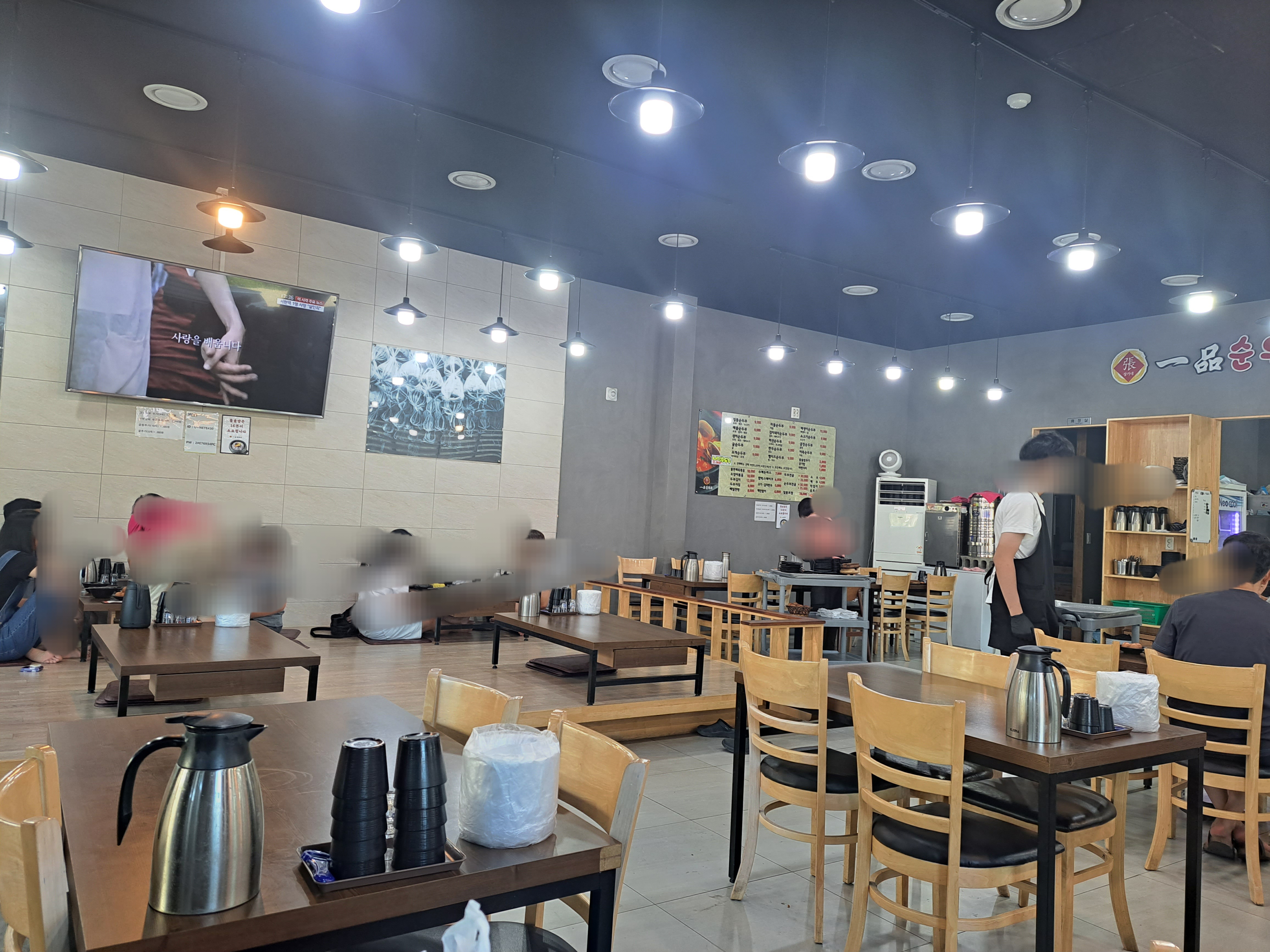 거제도 상동 일품 순두부의 매장은 꽤 넓은 편으로 입식 테이블과 좌식 테이블이 있습니다.
