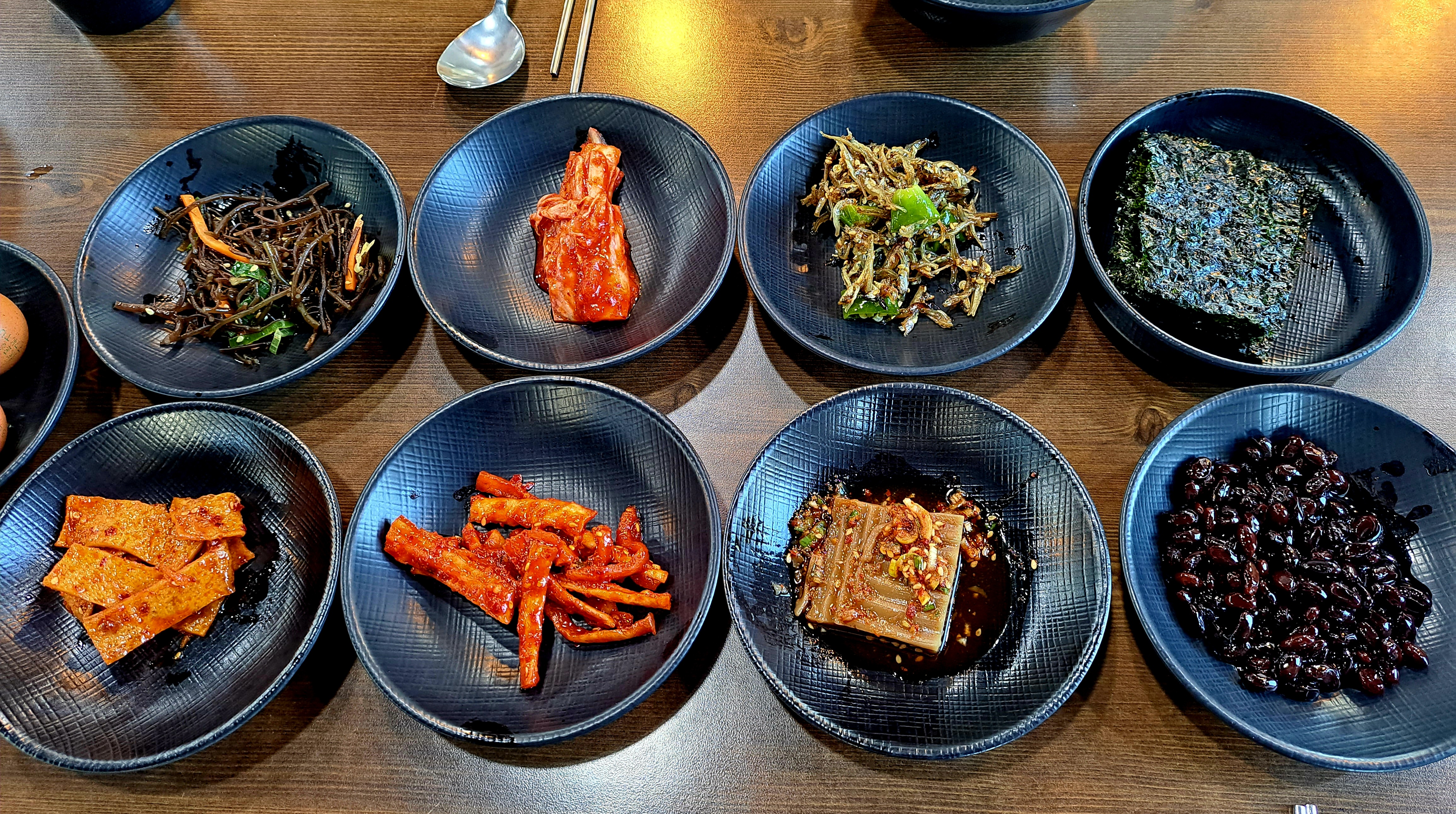 순두부찌개를 시키면 기본으로 나오는 반찬들입니다.
