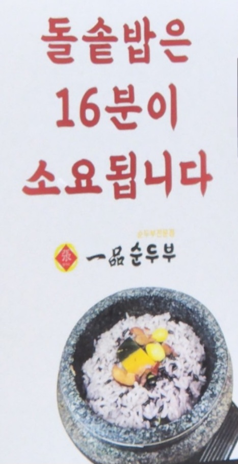돌솥밥은 나오기까지 보통 16분 정도 소요된다고 하니 참고하세요.