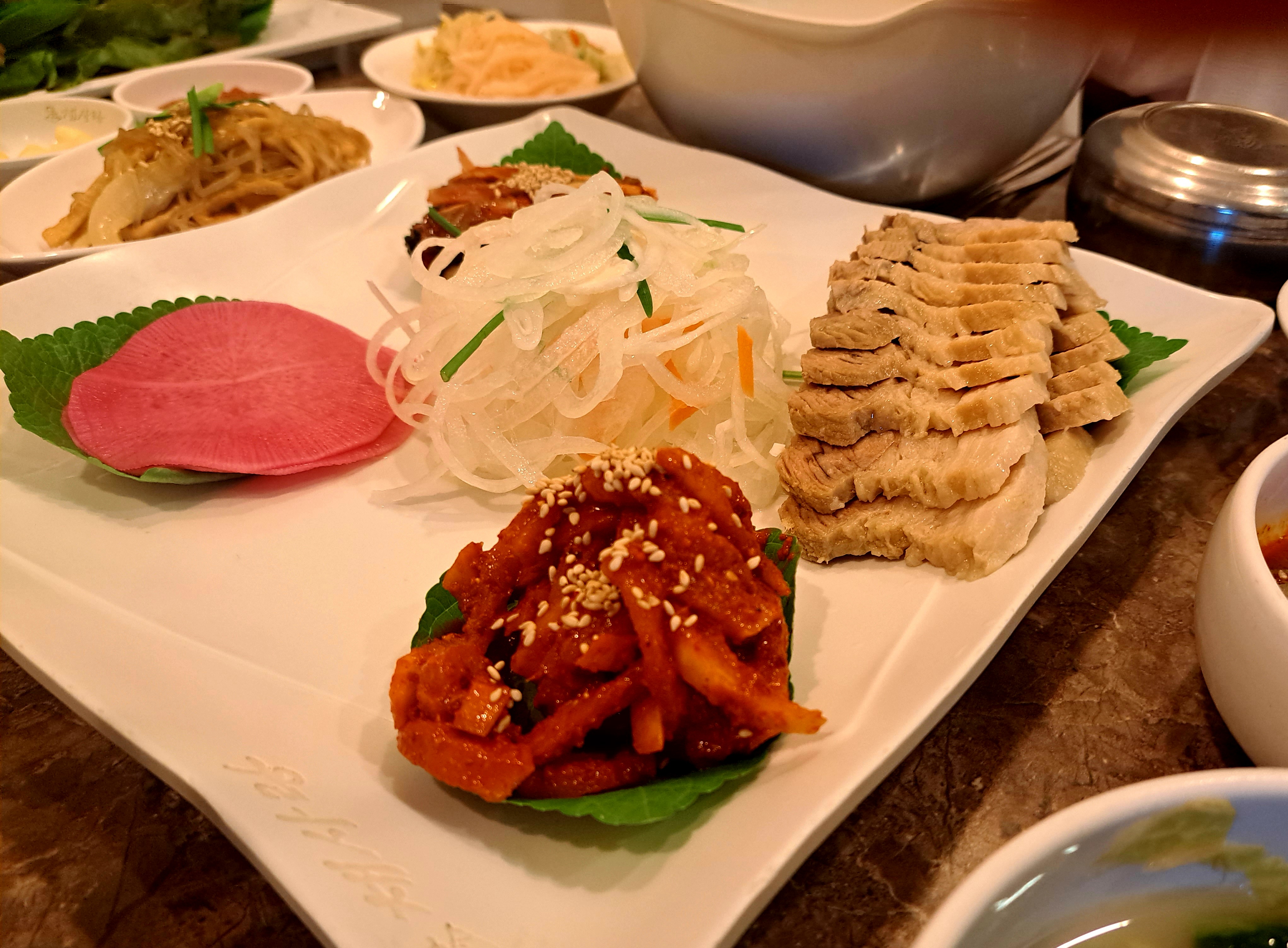 청국장/되비지탕/보쌈 외에도 막국수/도도리묵무침/도토리묵사발과 어린이들을 위한 돈가스도 준비되어 있습니다.