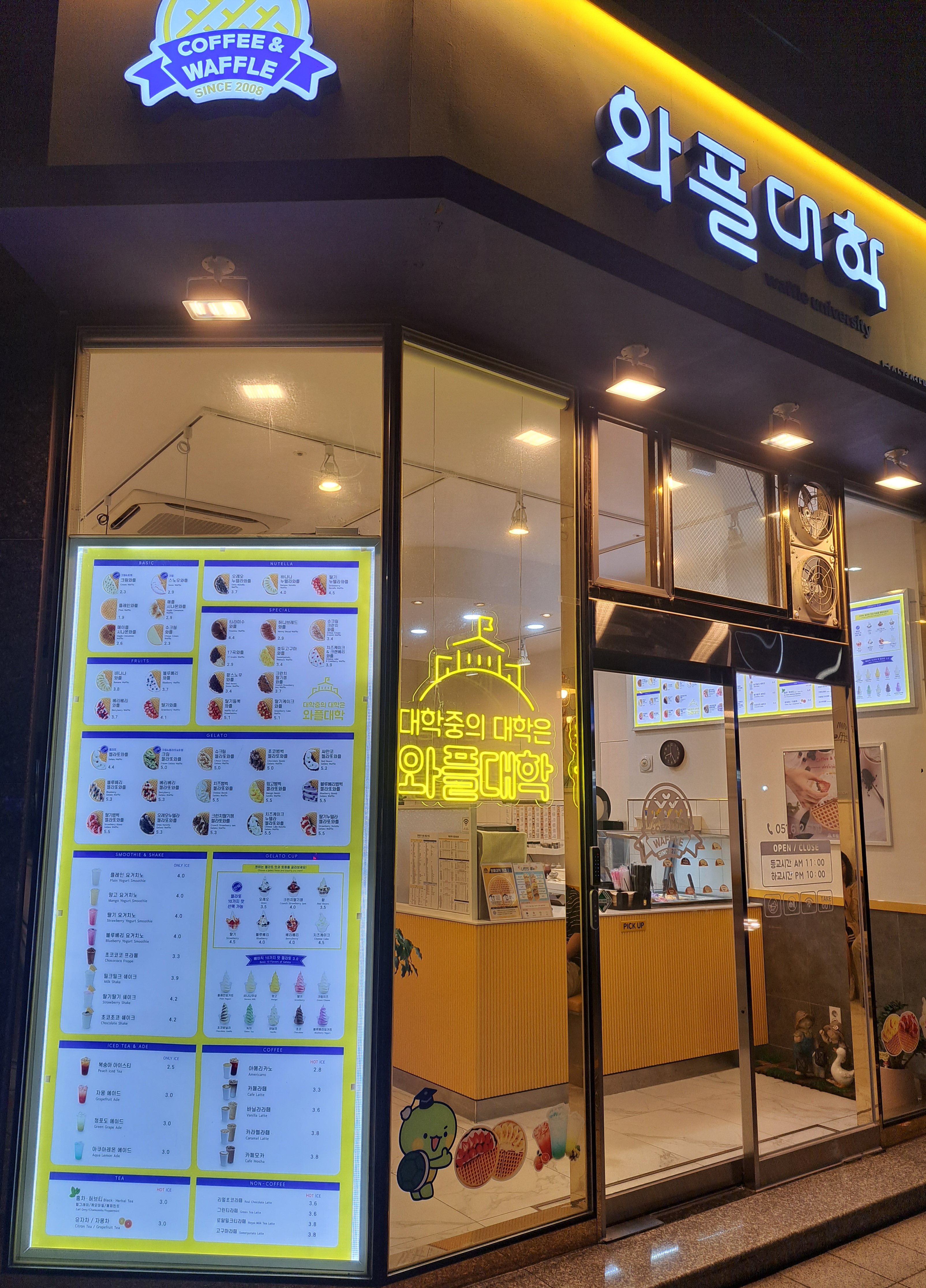 경성대 와플대학 외부에도 메뉴판이 있어서 밖에서 고르고 들어가셔도 됩니다.