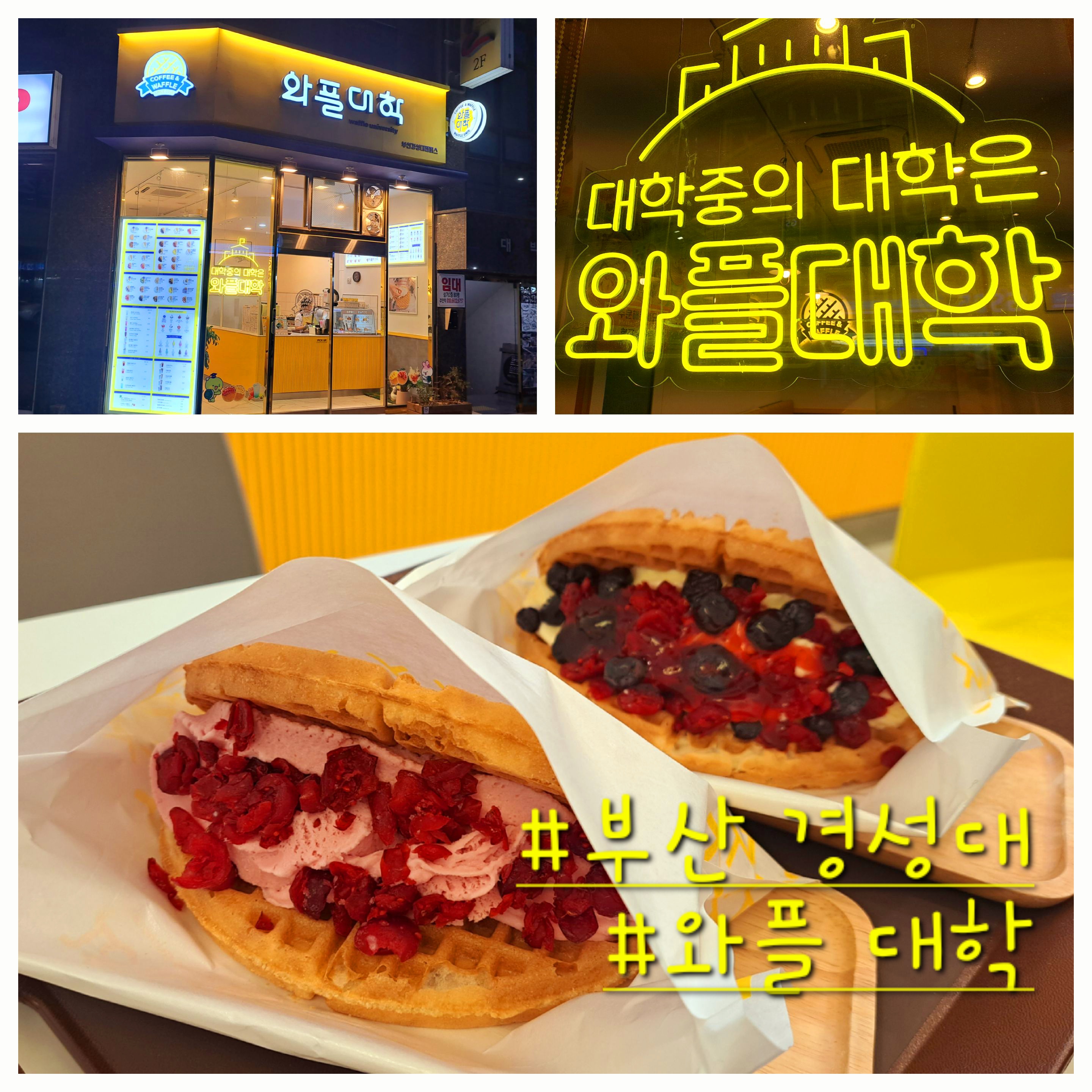 오늘은 부산 경성대 부경대 맛있는 디저트 천국인 와플대학을 소개해드릴게요.