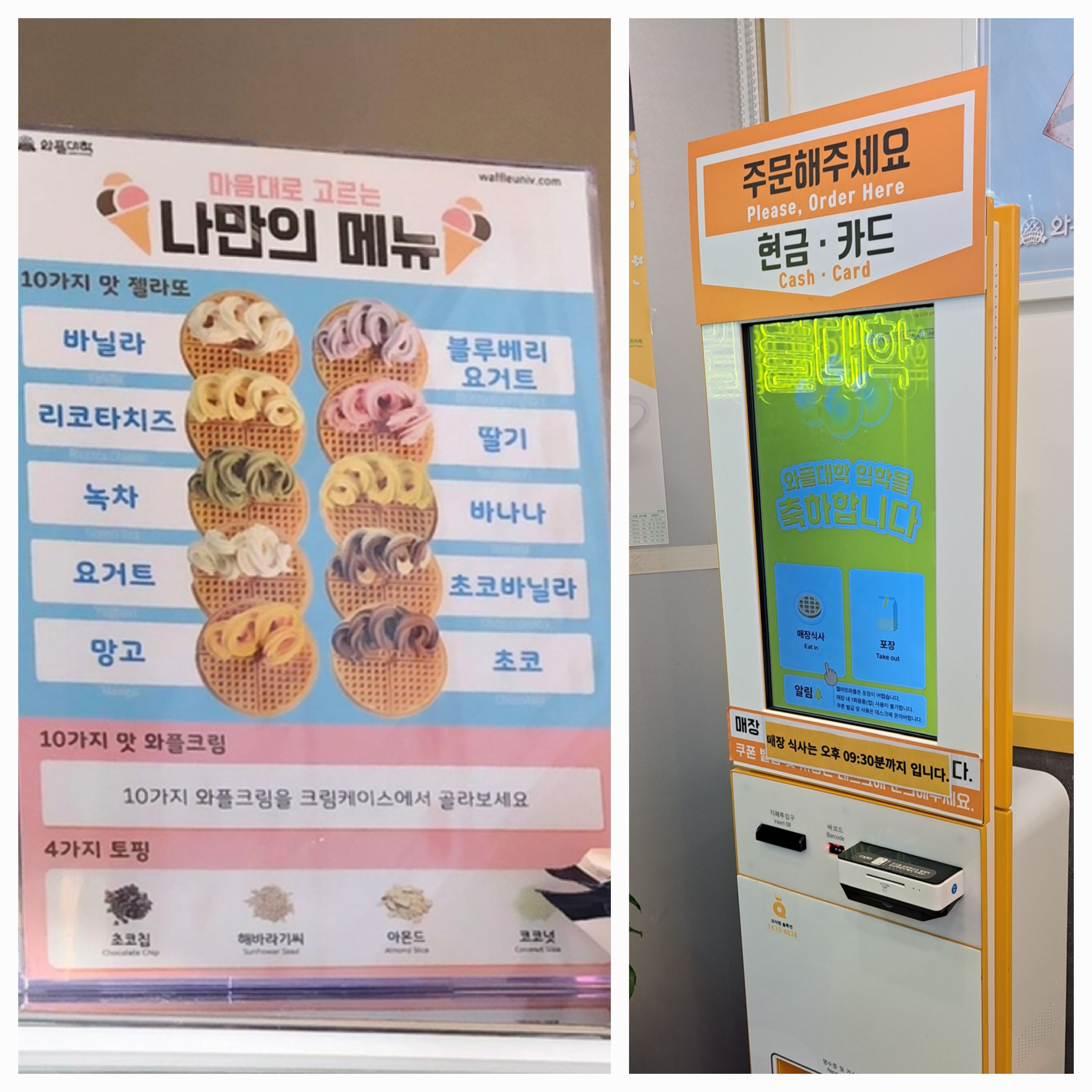 와플종류가 정말 많아서 무엇을 먹어야 할지 행복한 고민에 빠져봅니다.ㅎ