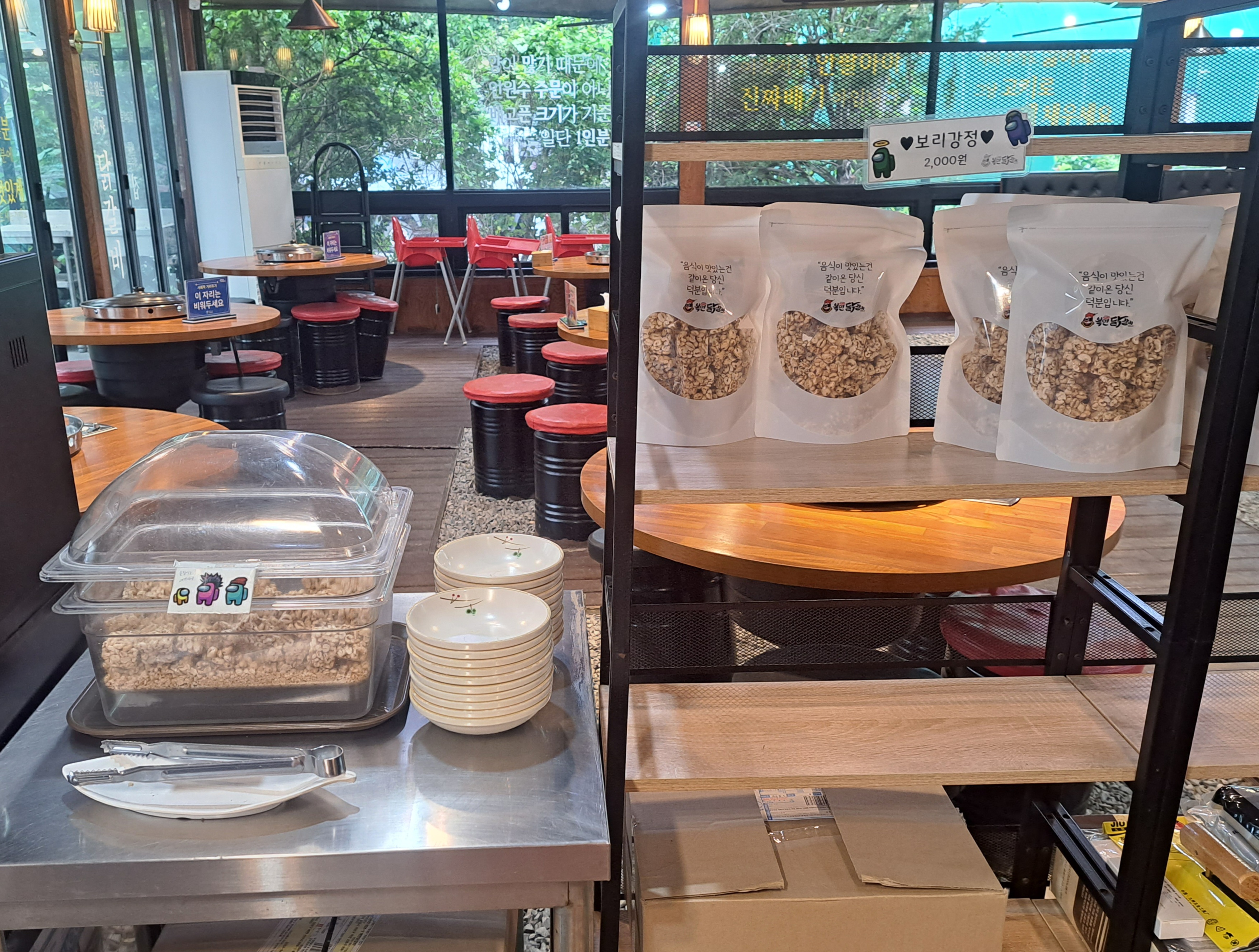 보리강정은 판매도 하고 시식코너도 준비되어 있습니다.