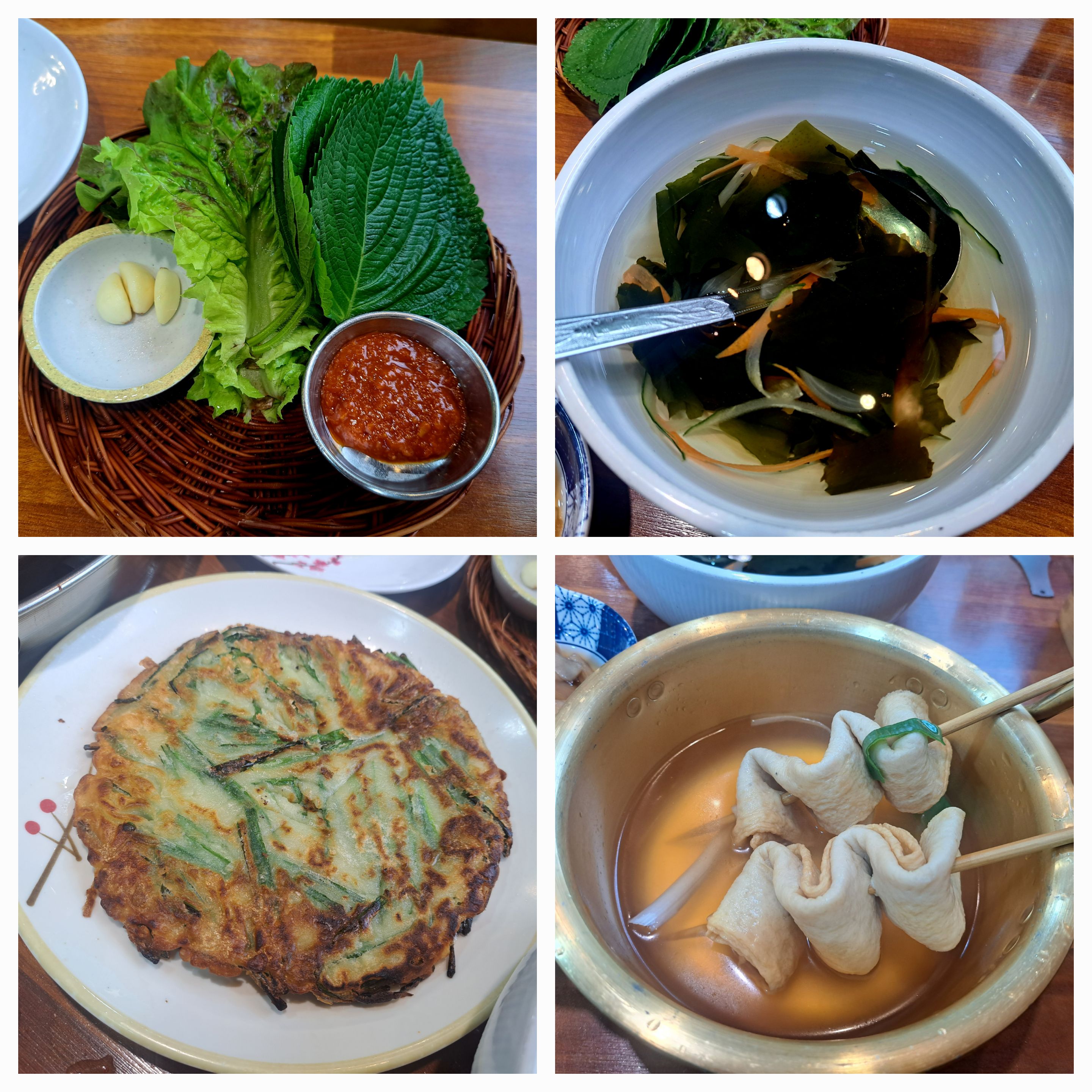 밑반찬으로는 상추, 깻잎, 오이냉국, 쌈무등이 나옵니다.