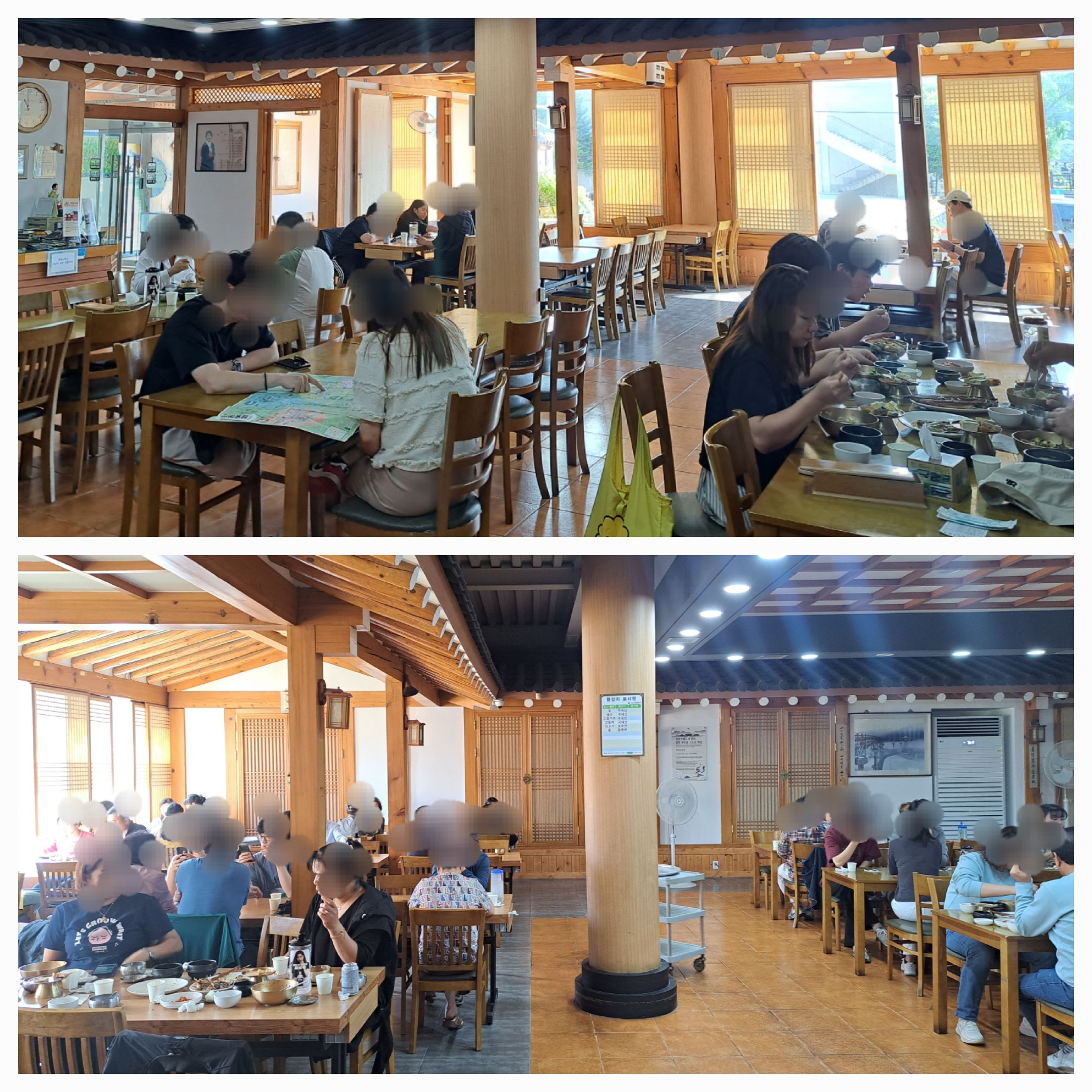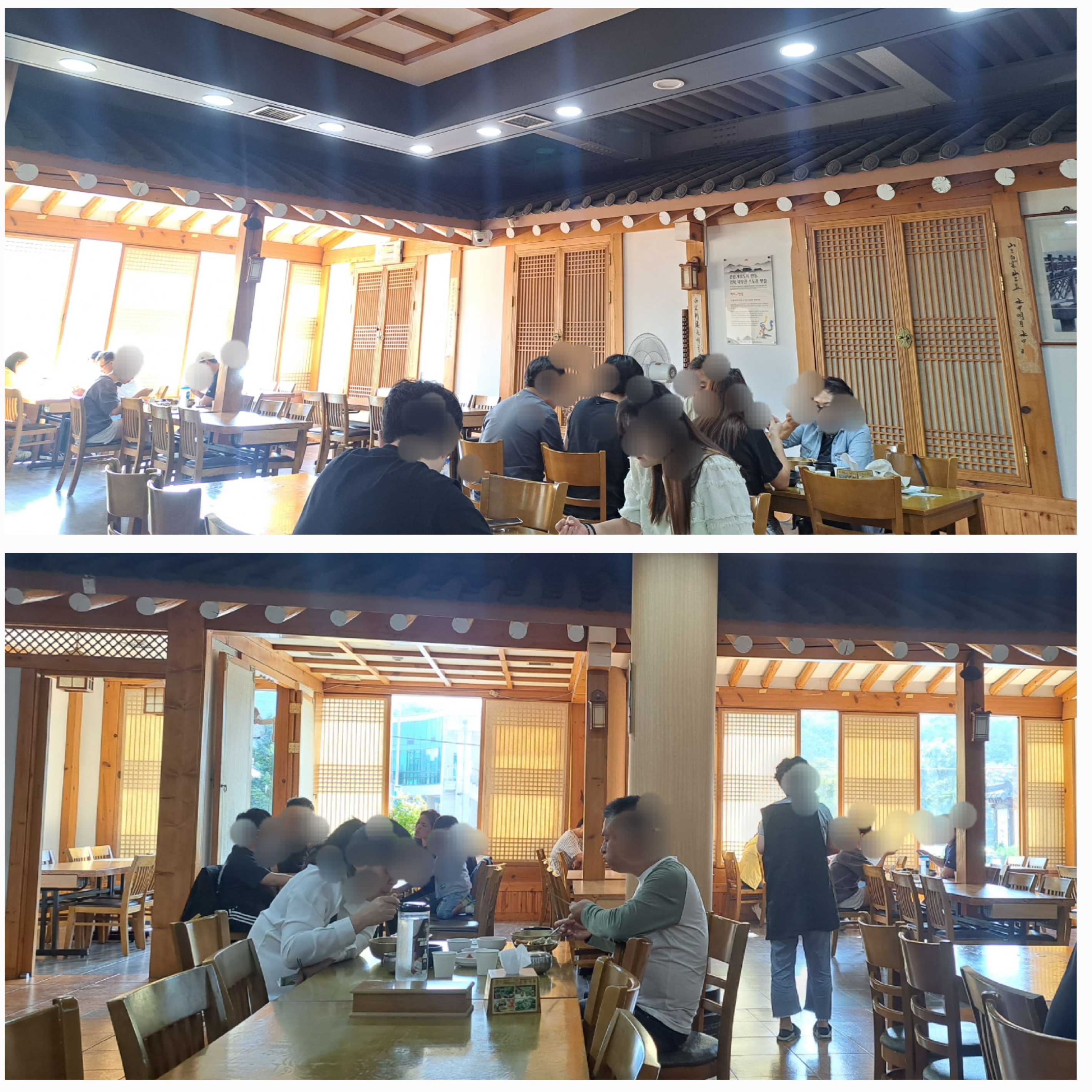 식당내부는 넓고 전통적인 한옥 가옥 인테리어로 꾸며져 있습니다.