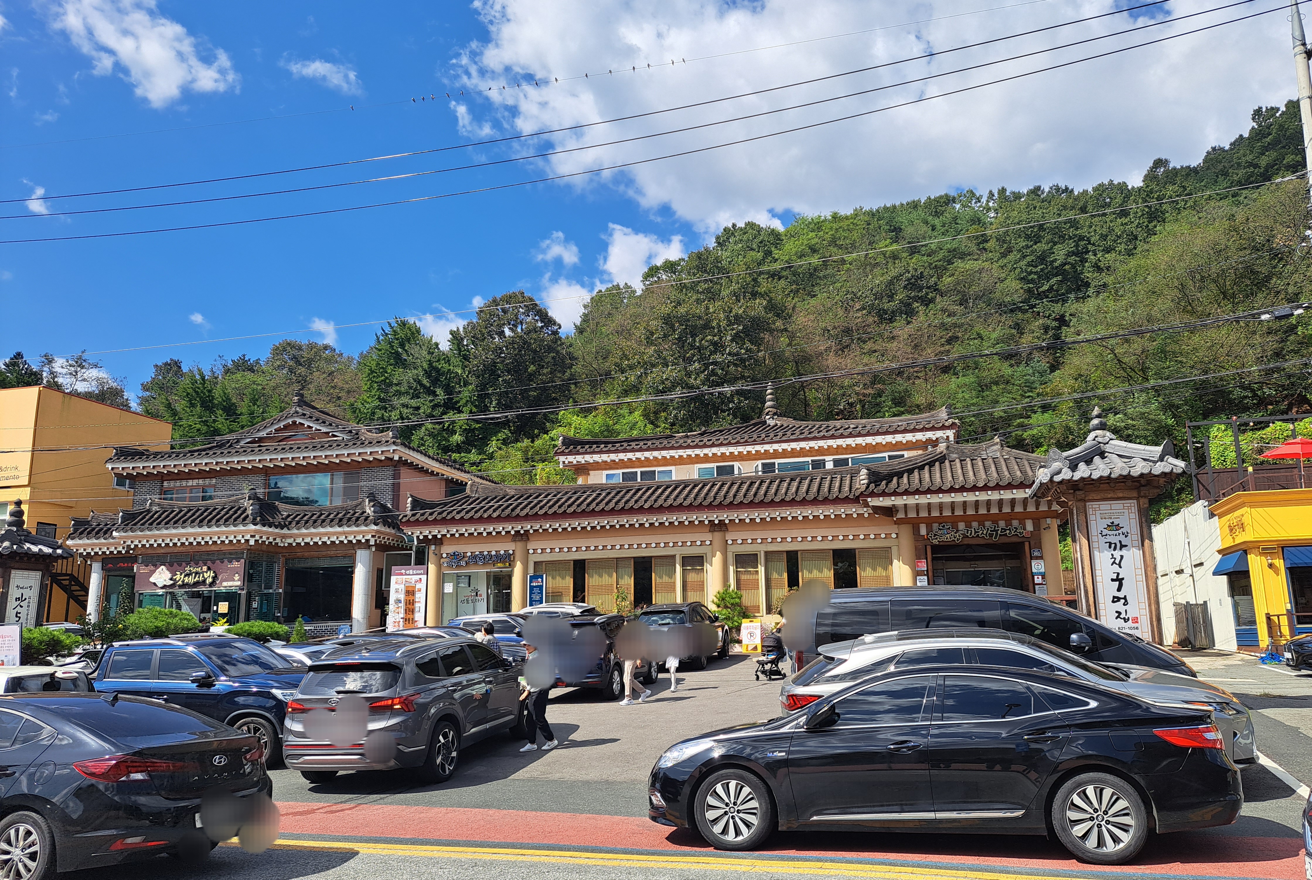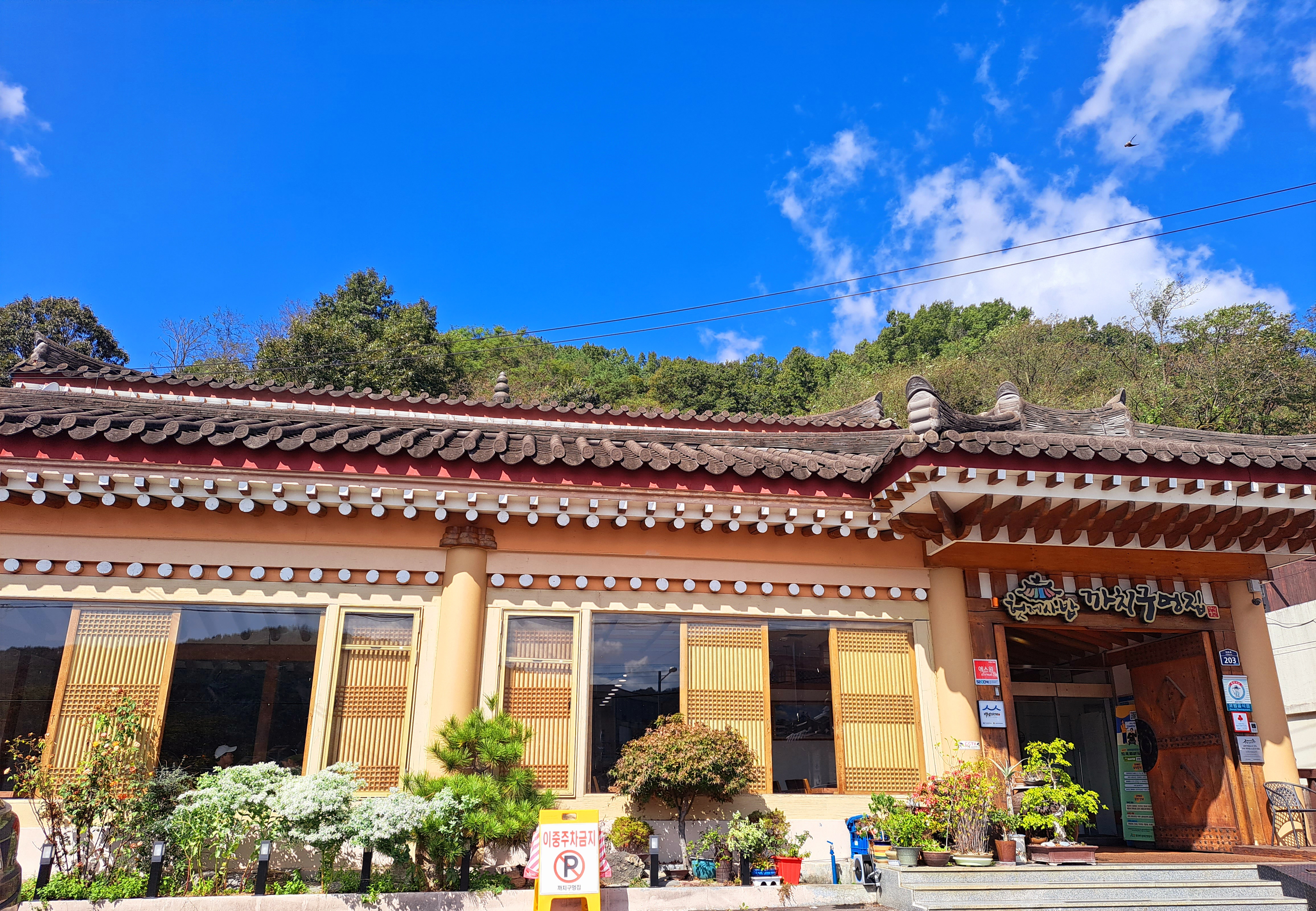 한옥 스타일의 건물이 멀리서도 한눈에 확 띄는 퓨전 기와집입니다.