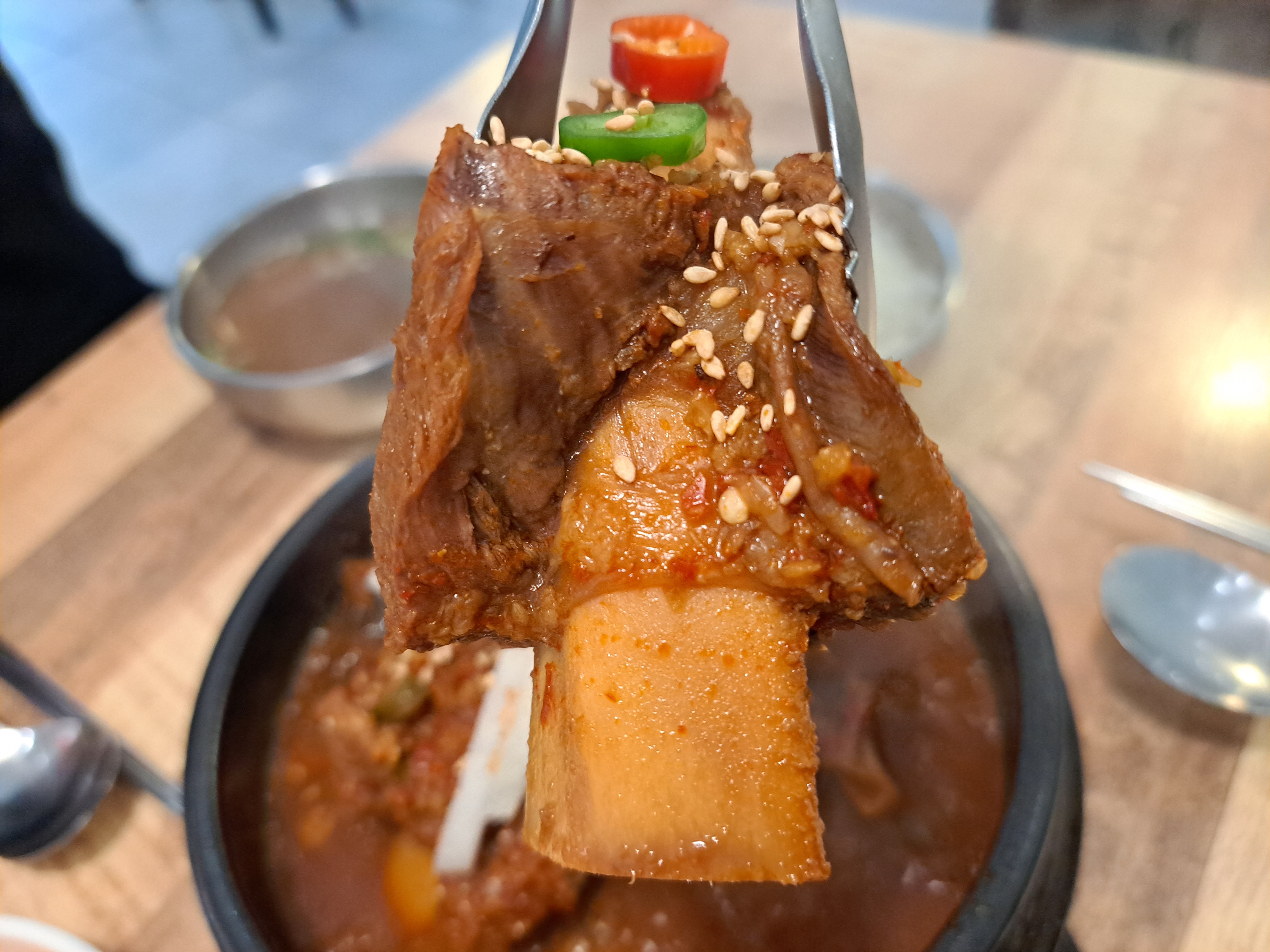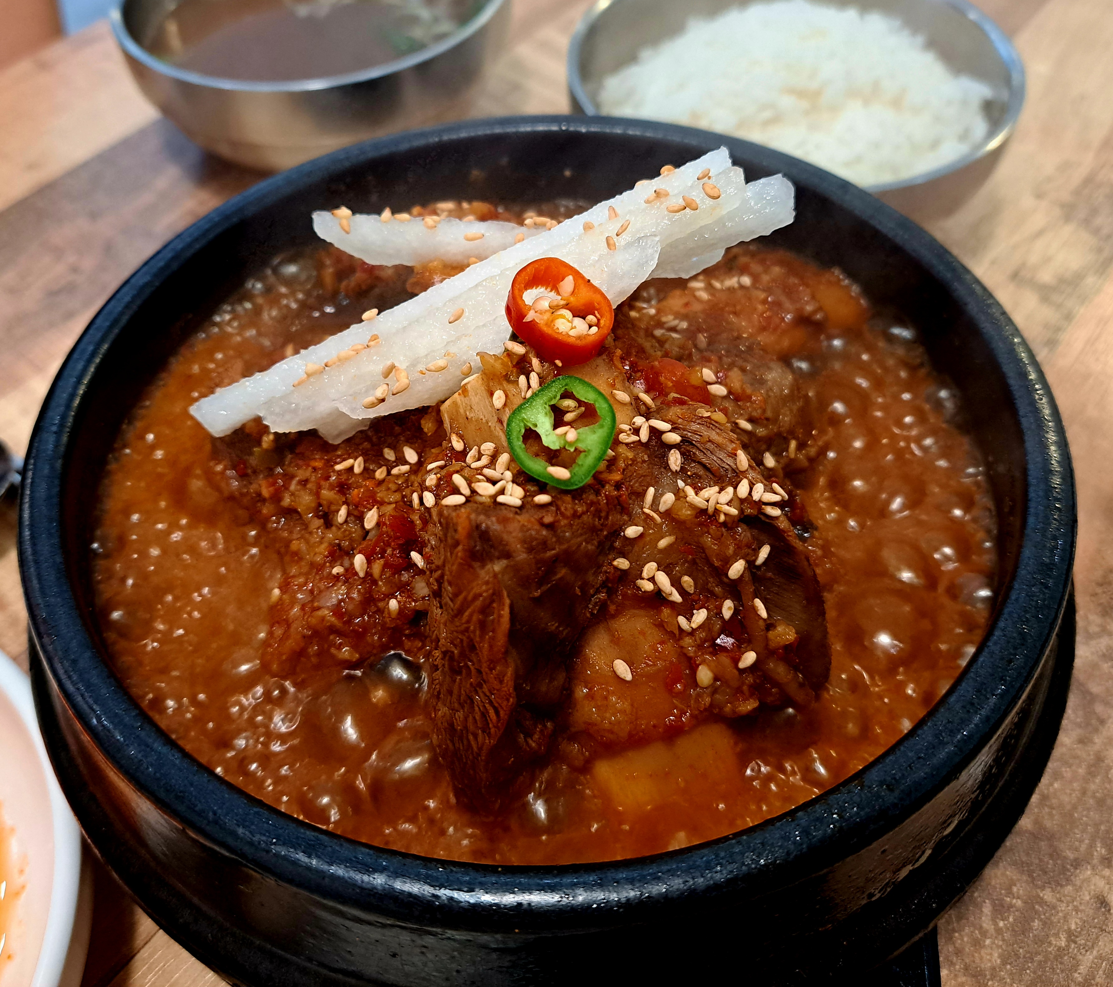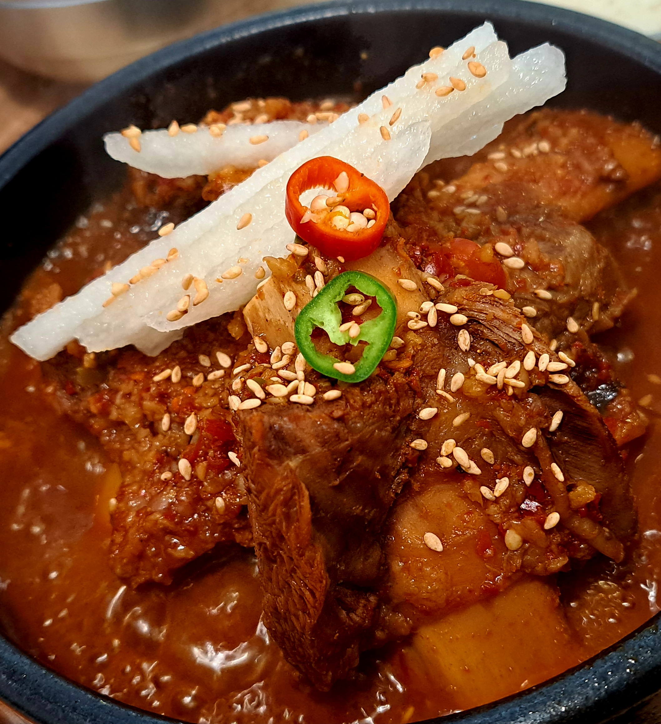 보글보글 뚝배기에 통깨가 솔솔 뿌려져 나온 찜갈비입니다.