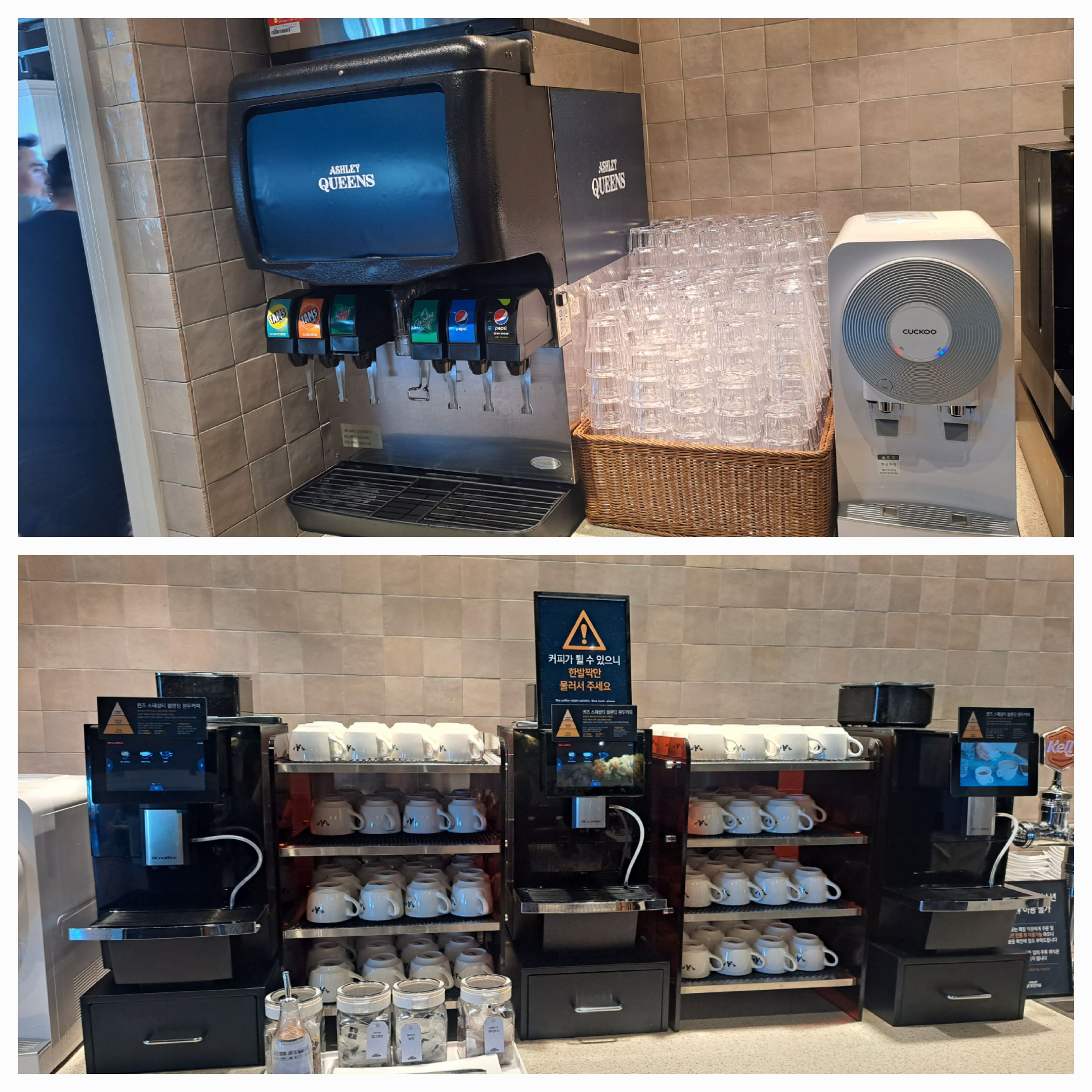 애슐리퀸즈는 호출벨을 누르면 기계가 와서 치우는 방식입니다.