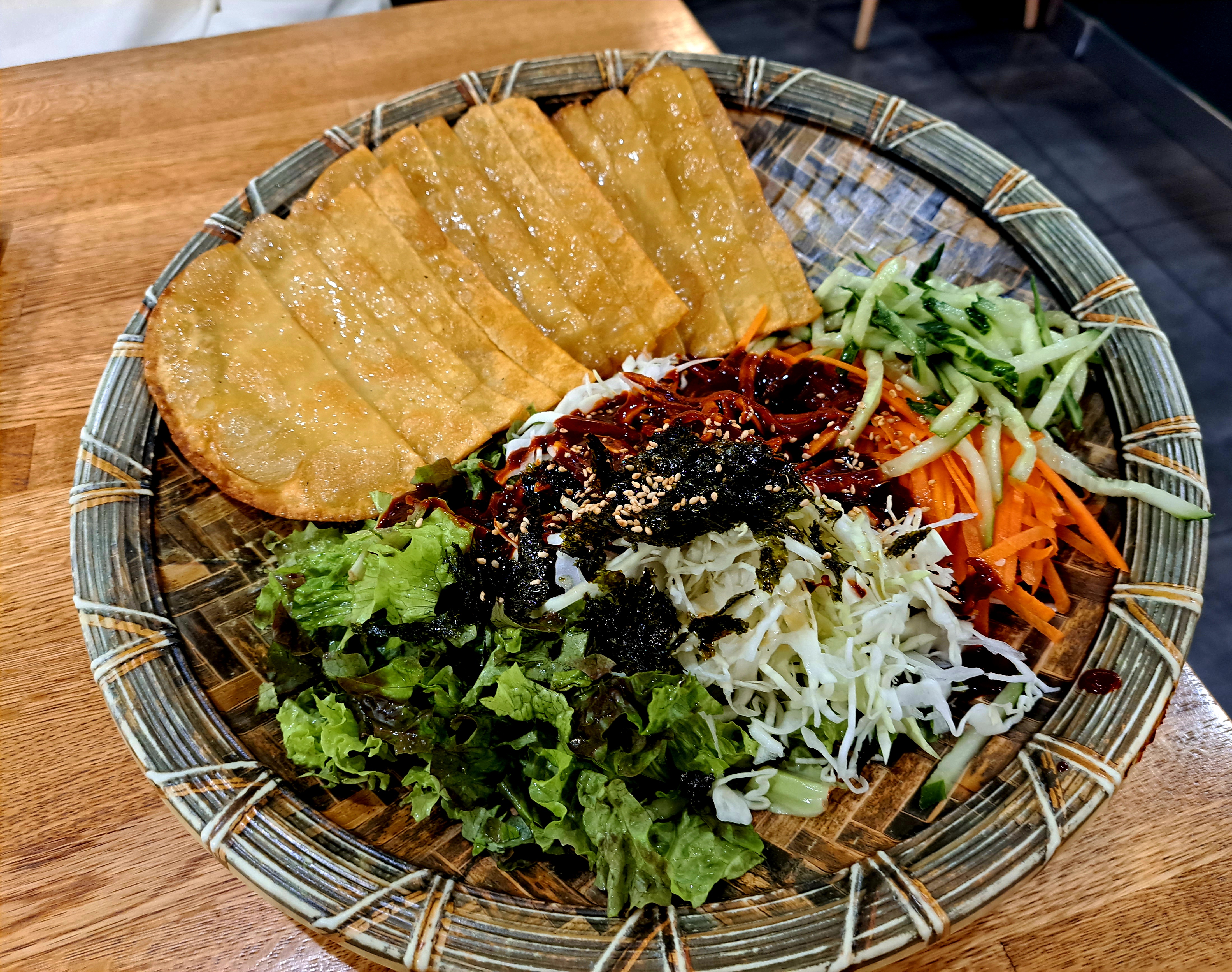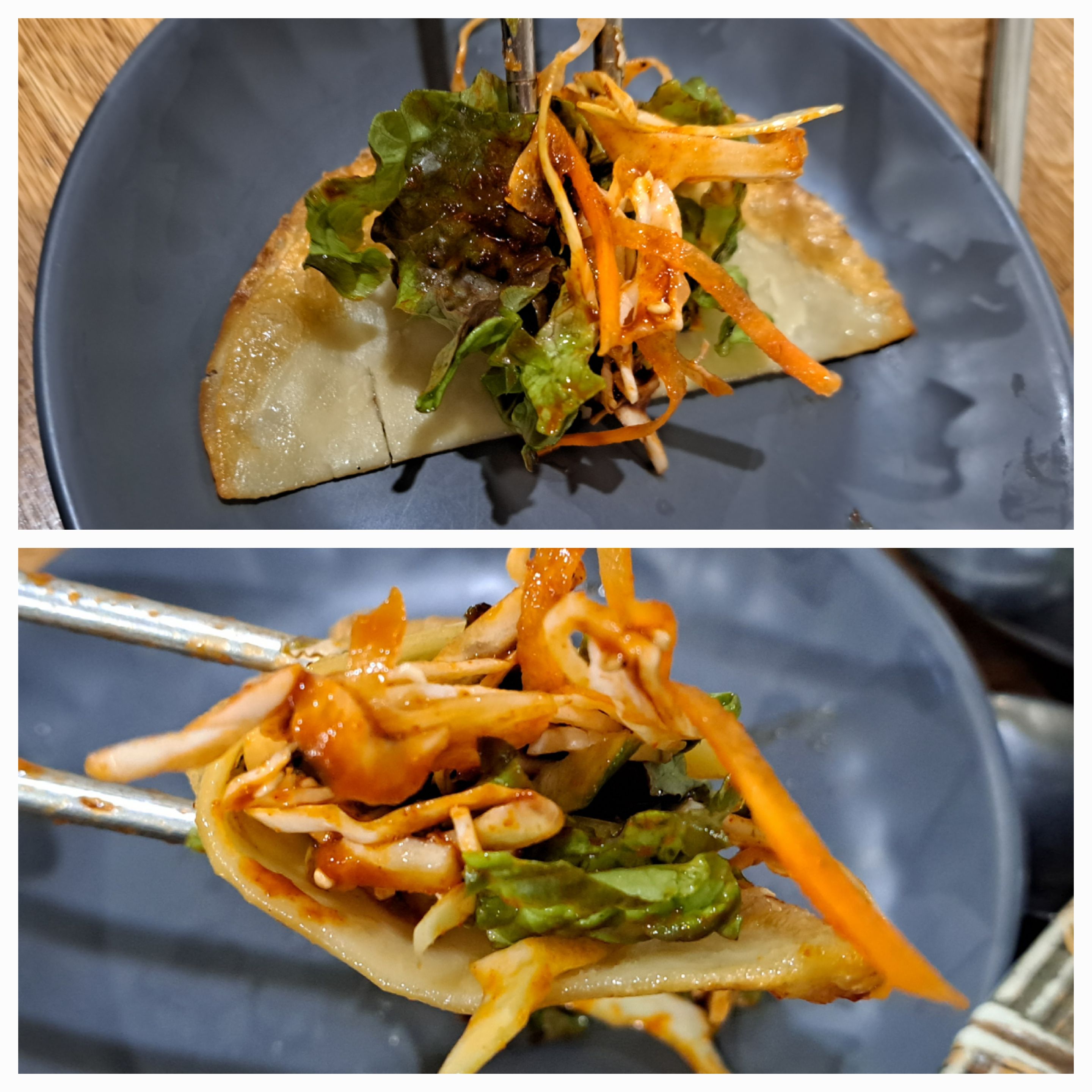 바삭한 만두피에 싱싱한 야채들을 싸서 함께 먹는 이 조합 정말 꿀맛입니다.