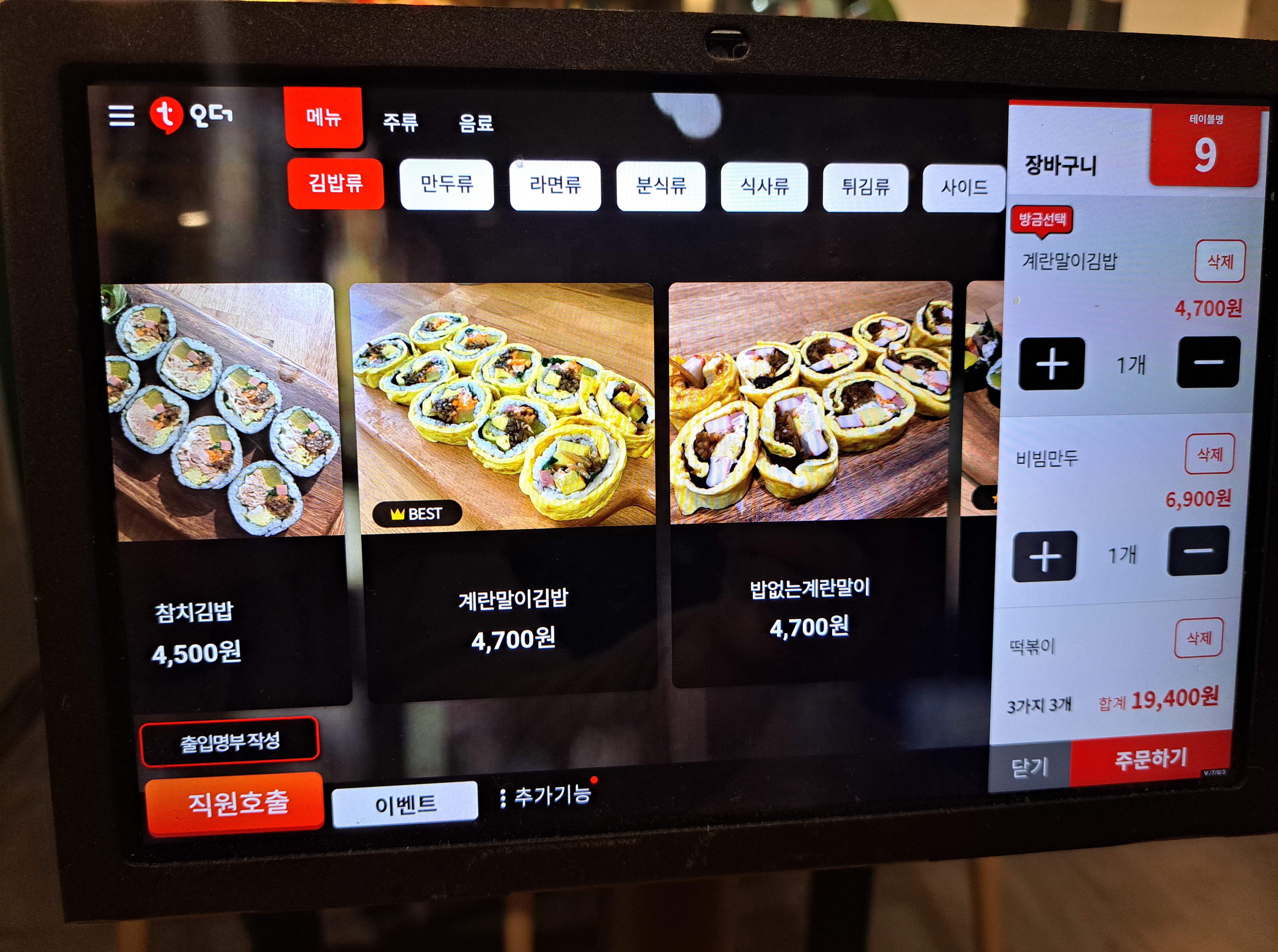주문은 각 테이블마다 있는 태블릿으로 주문을 하면 됩니다.