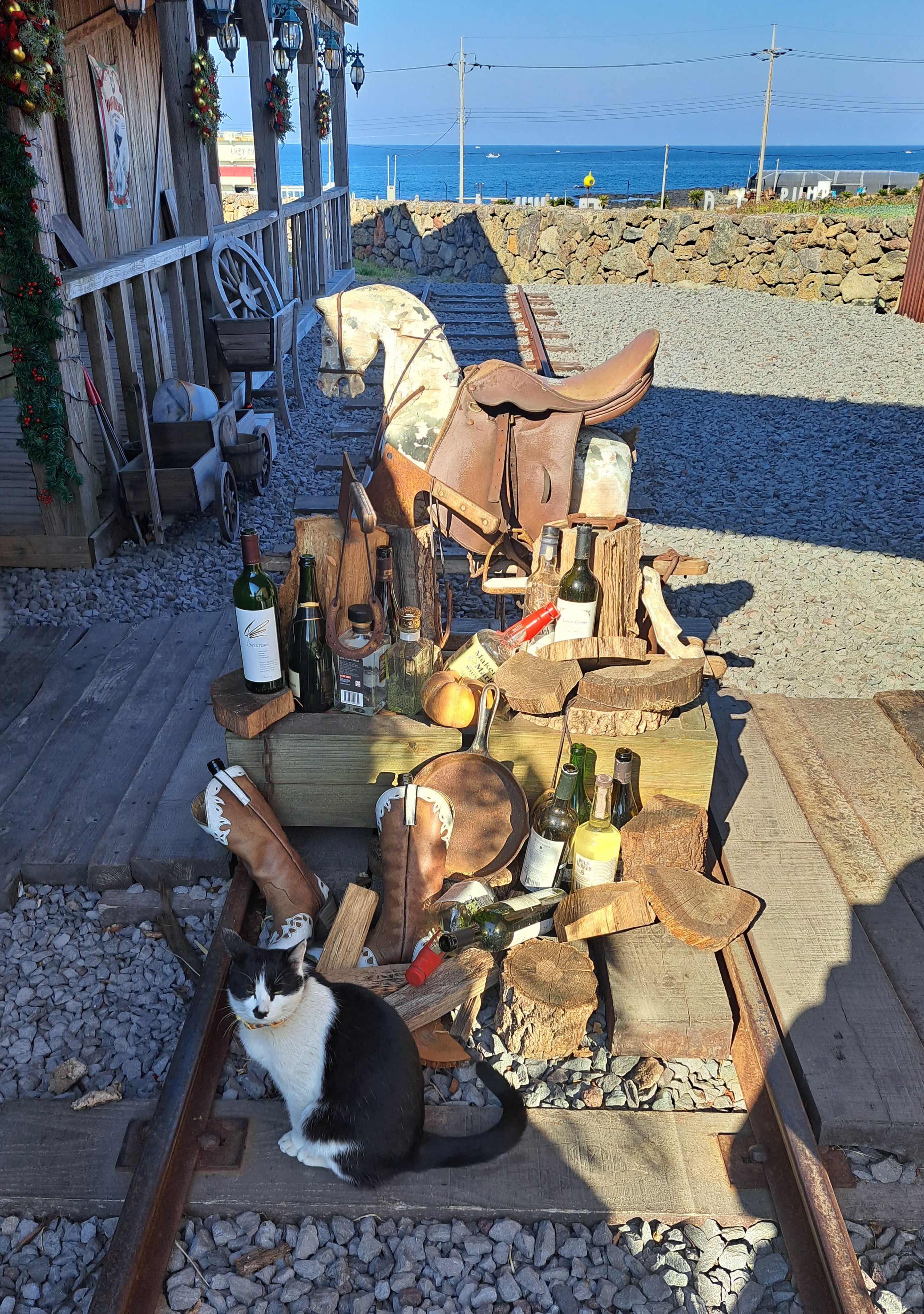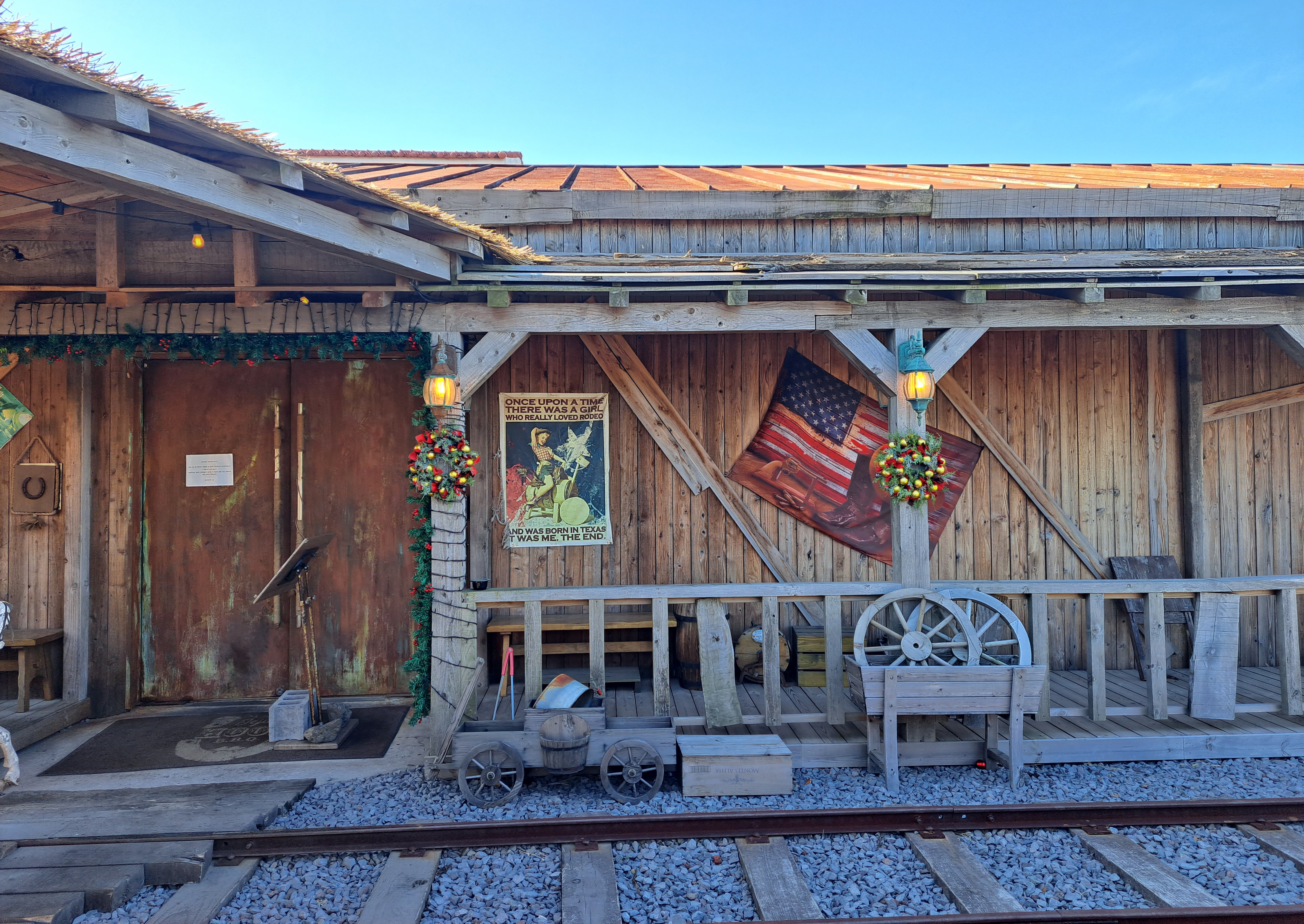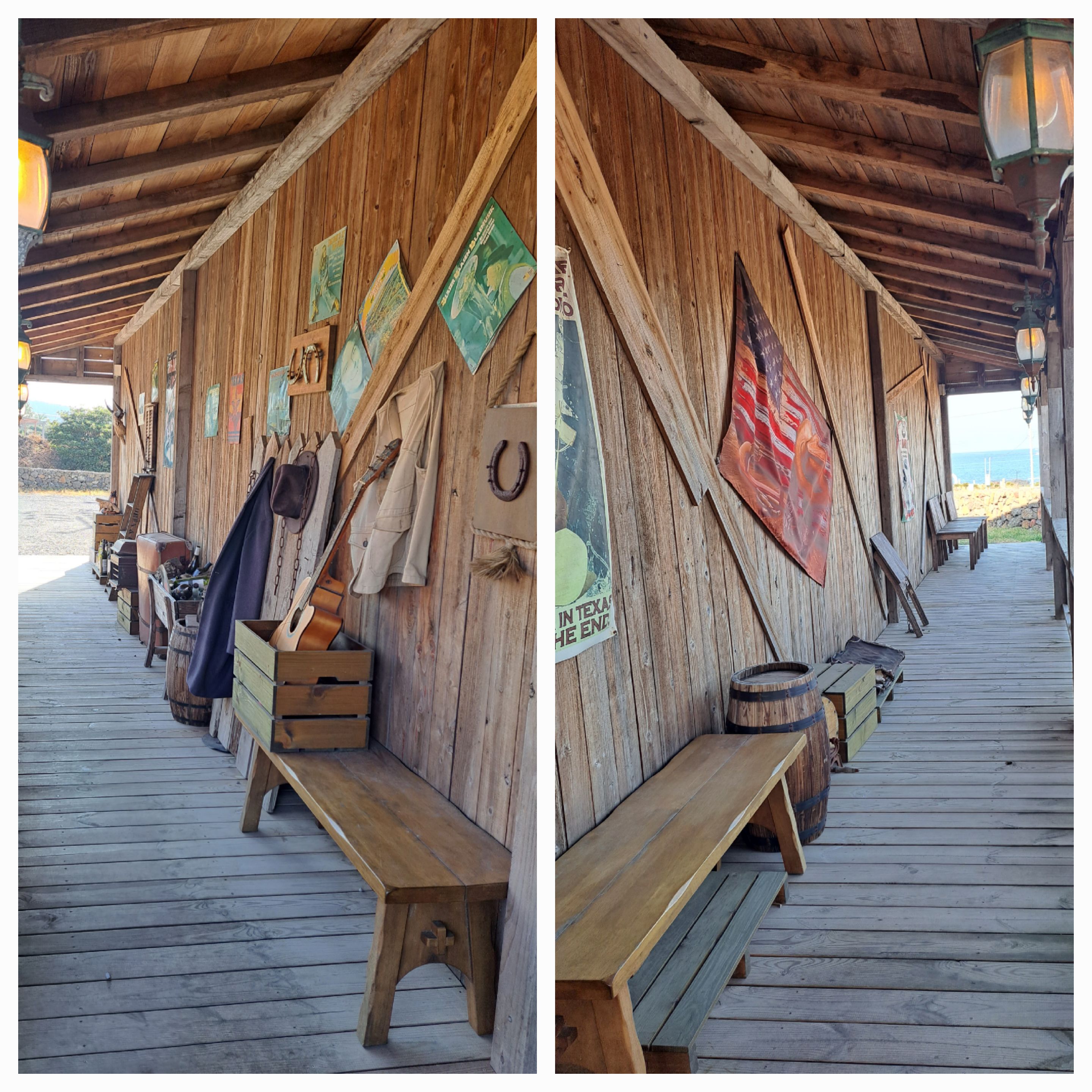외관모습만 이국적인 게 아니라 입구에는 다양한 소품들로 미국 서부 카우보이 영화 속에서 본 듯한 느낌이었습니다.