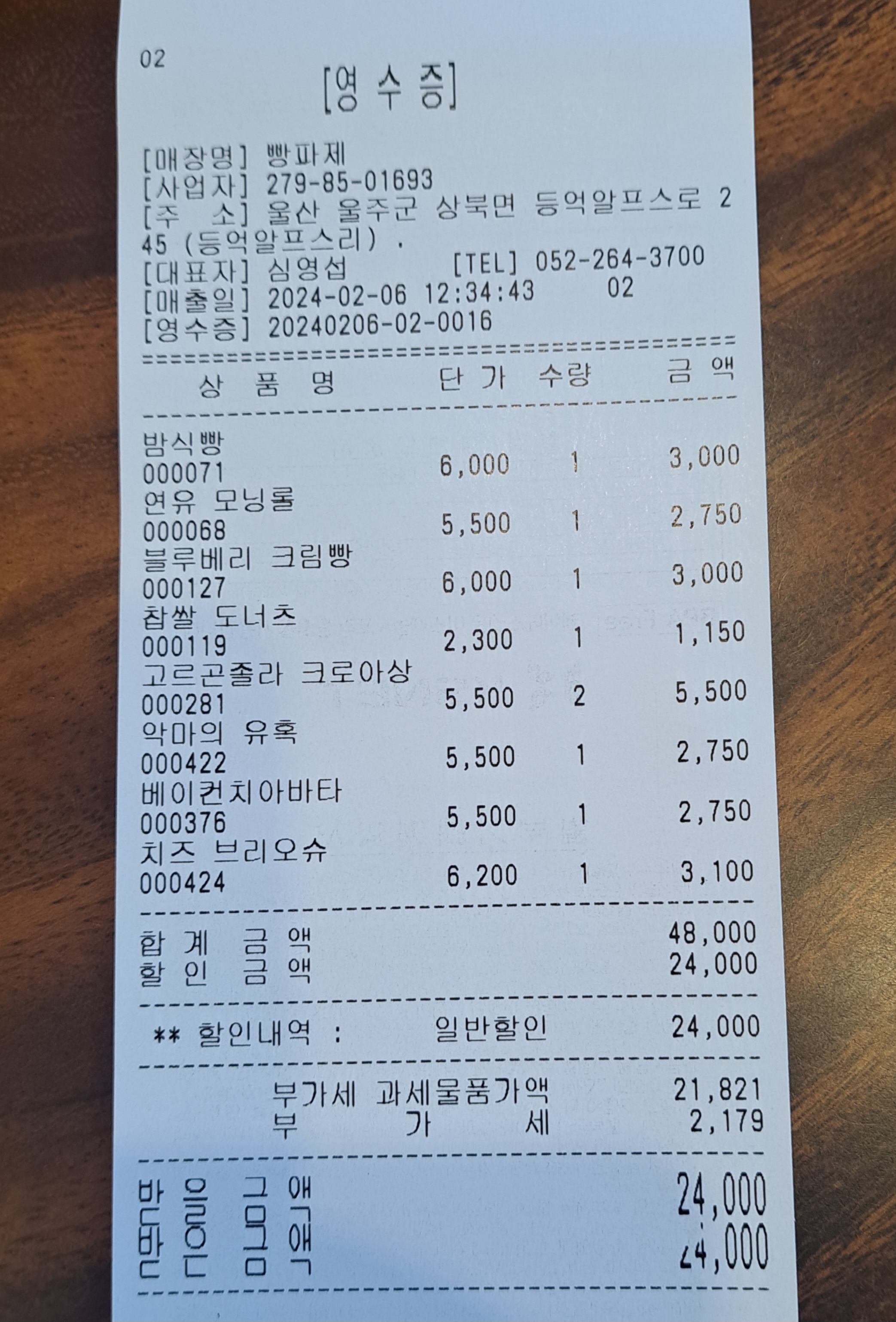맛있는 빵들을 할인된 가격에 정말 저렴하게 구매했습니다.