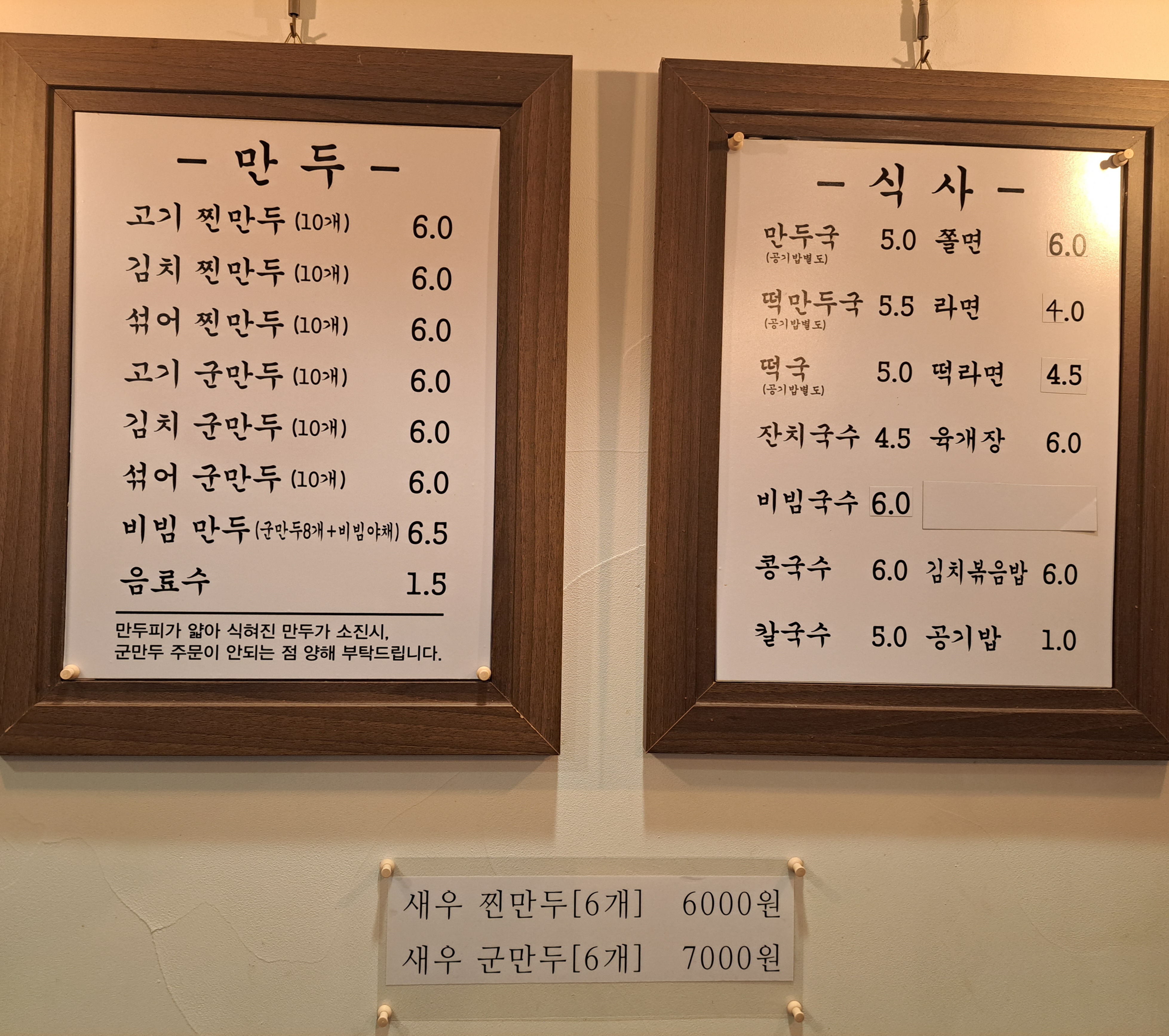 저희는 새우찐만두와 만둣국을 주문했습니다.