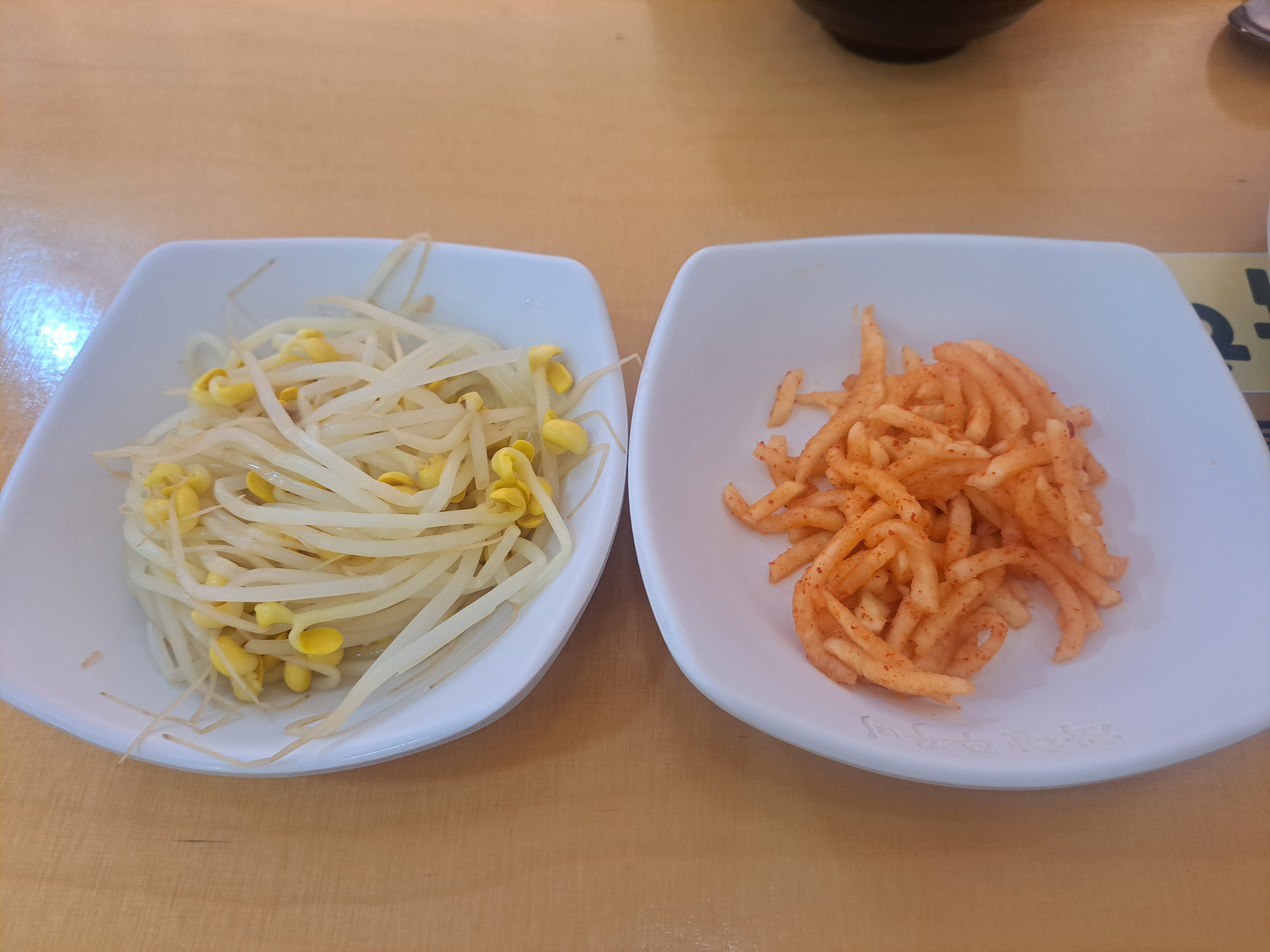 기본반찬으로 쭈꾸미와 함께 비벼 먹을 수 있는 콩나물과 무생채가 나옵니다.