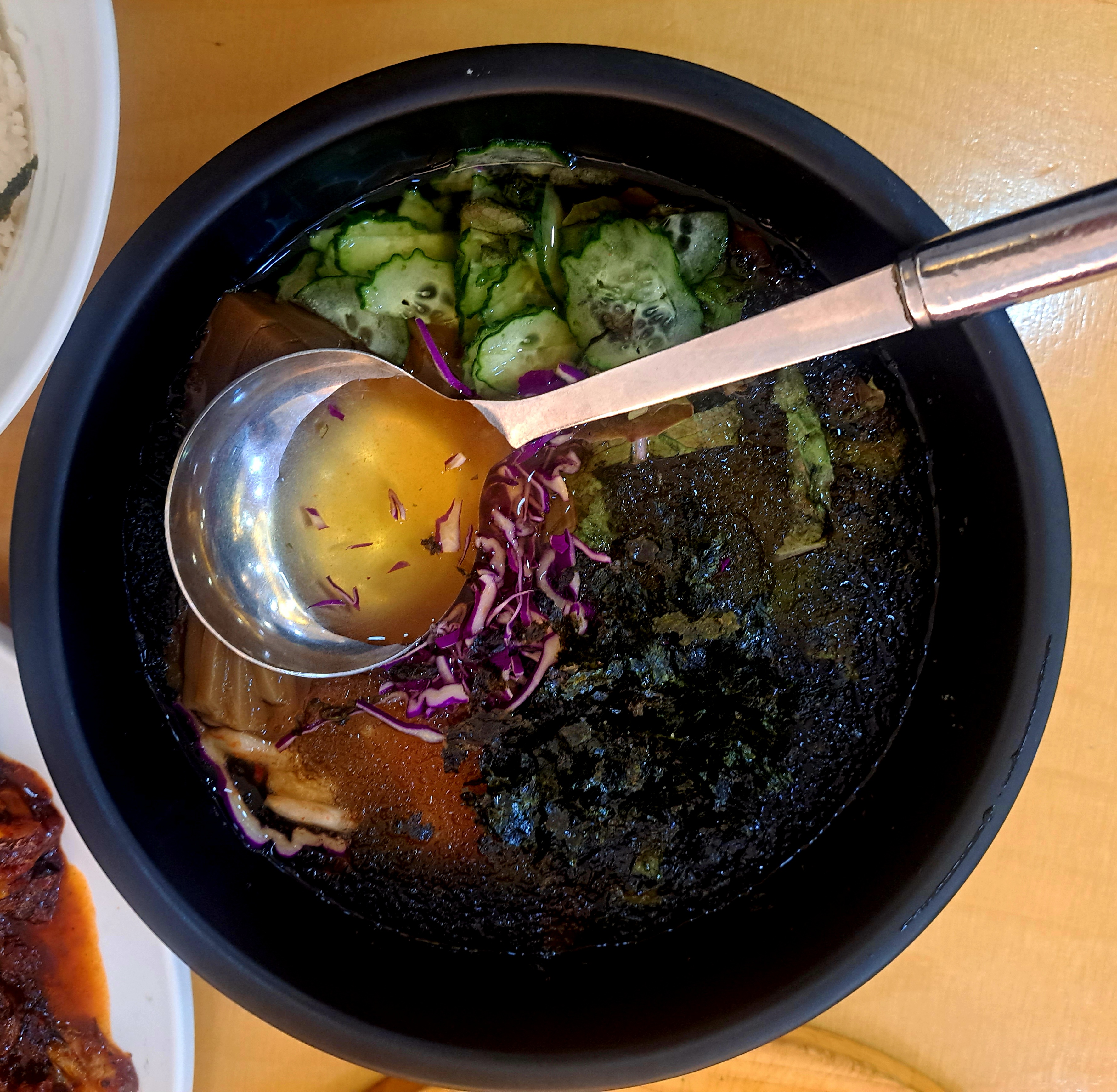 살얼음 동동 야채들과 묵이 가득 들어있는 시원한 묵사발은 매운 음식 먹을 때 함께 먹으니 좋았습니다.