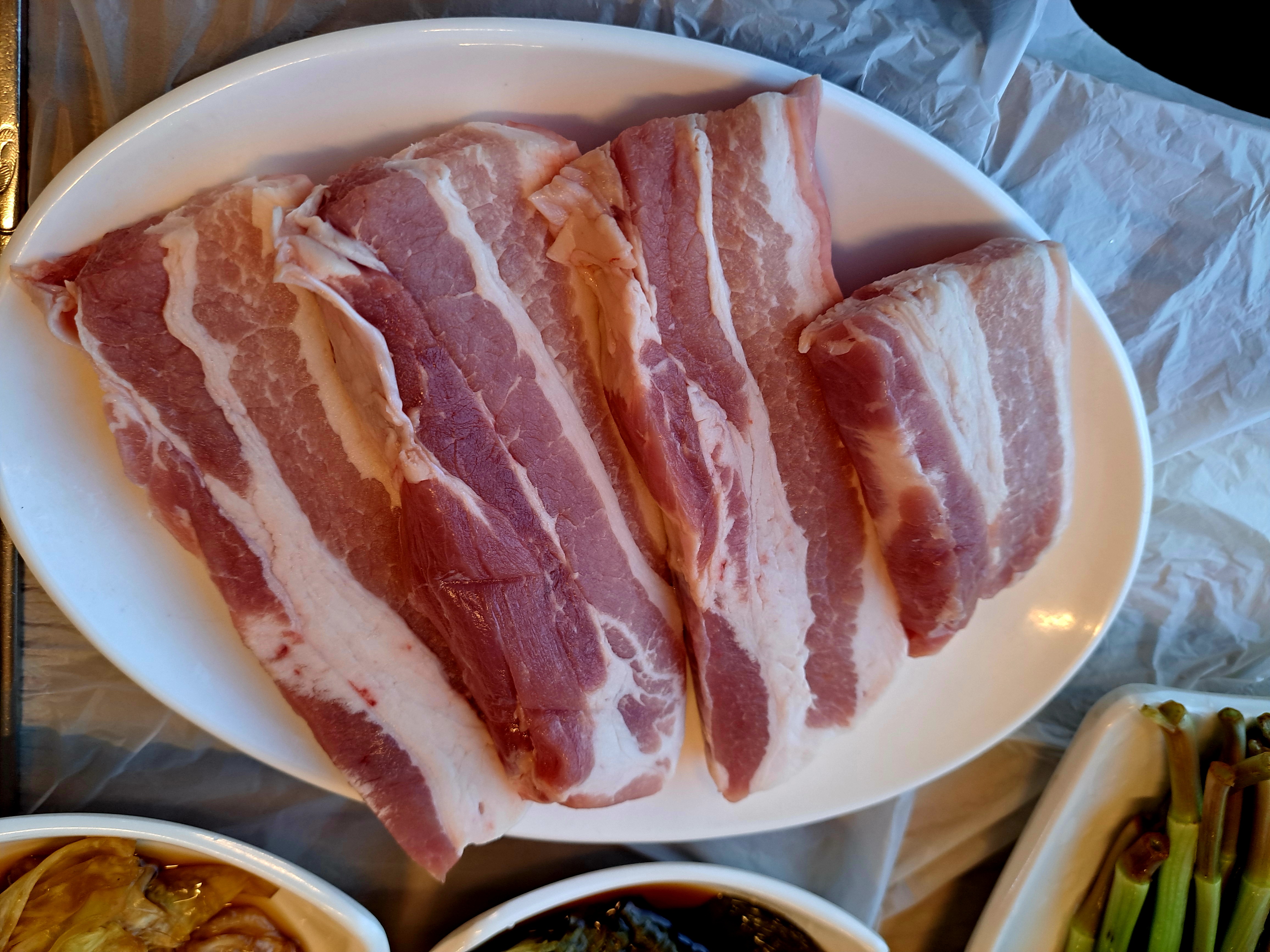 두꺼운 생삼겹살이 비주얼이 좋았습니다.